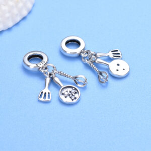 S925 Sterling Silver Beaded DIY Pendant Frying Pan