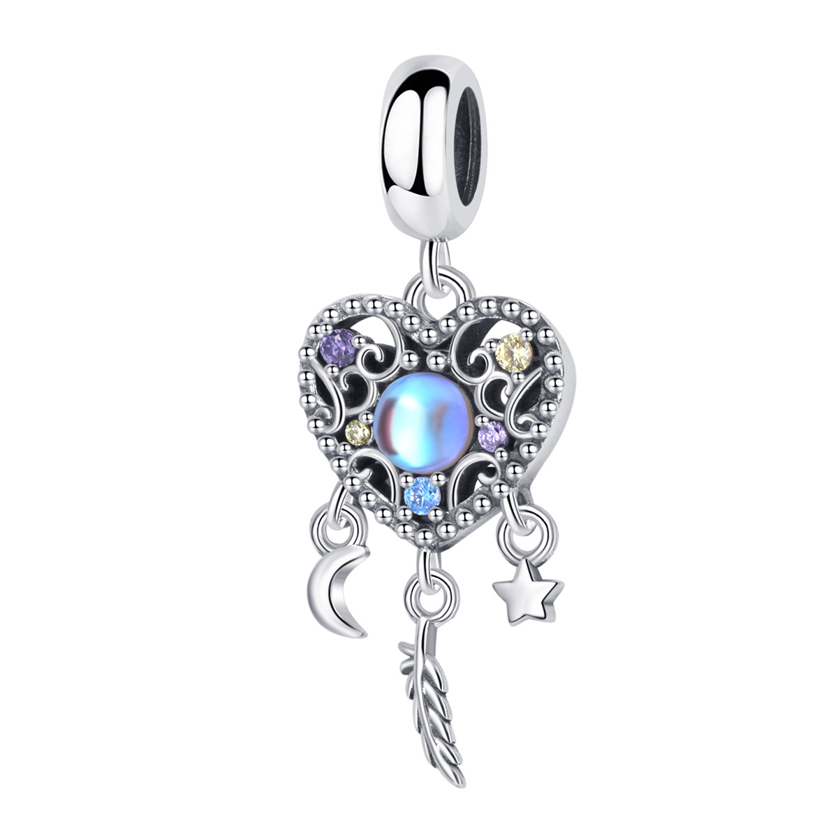 S925 sterling silver beaded DIY pendant heart shaped