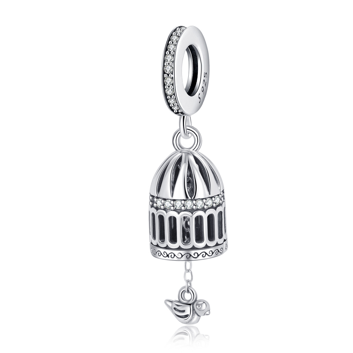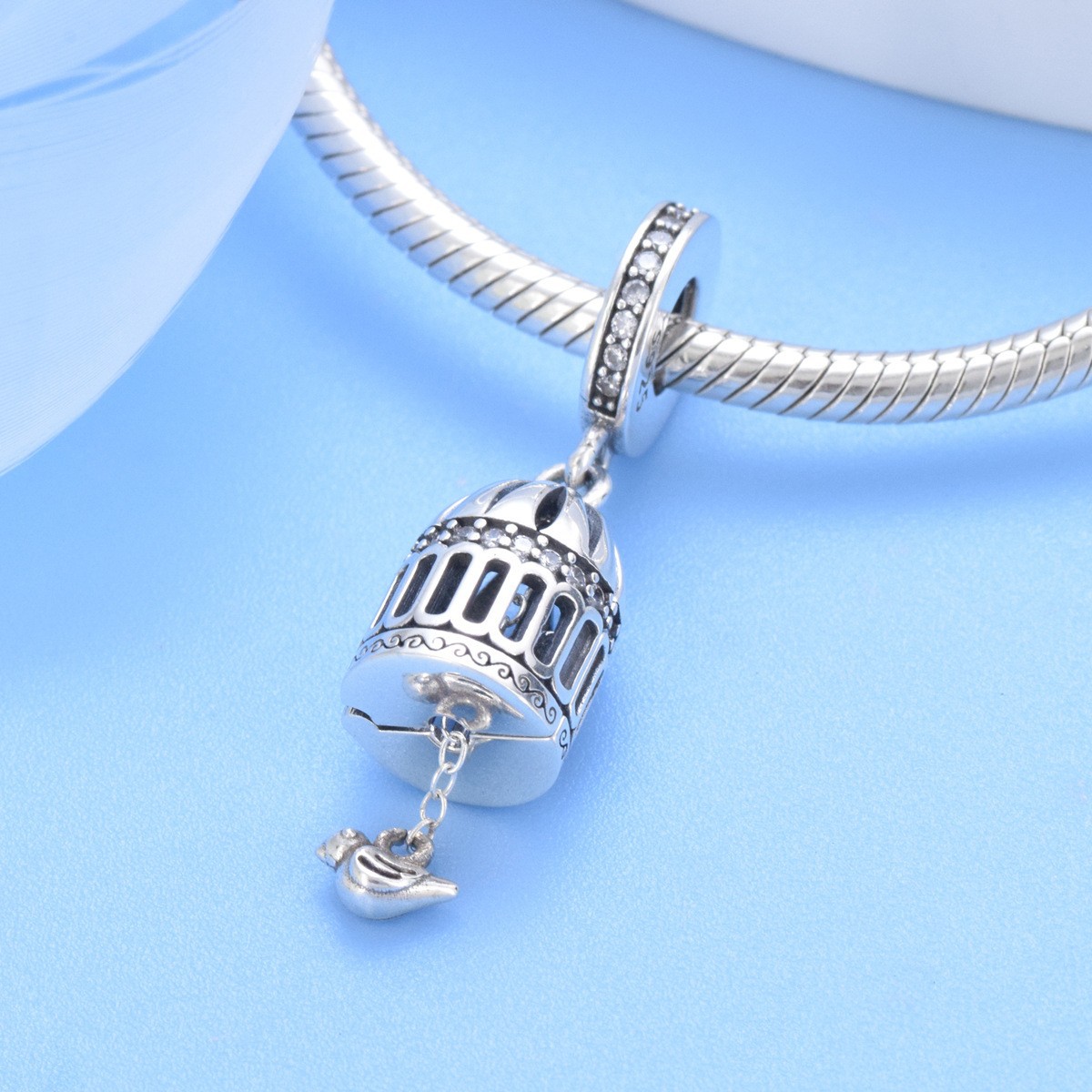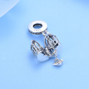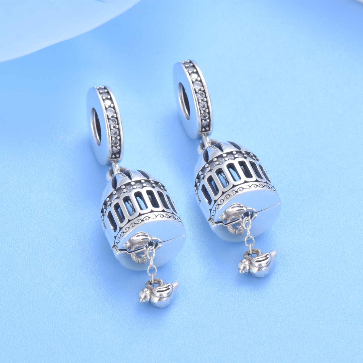 S925 sterling silver beaded DIY pendant hollow bird cage