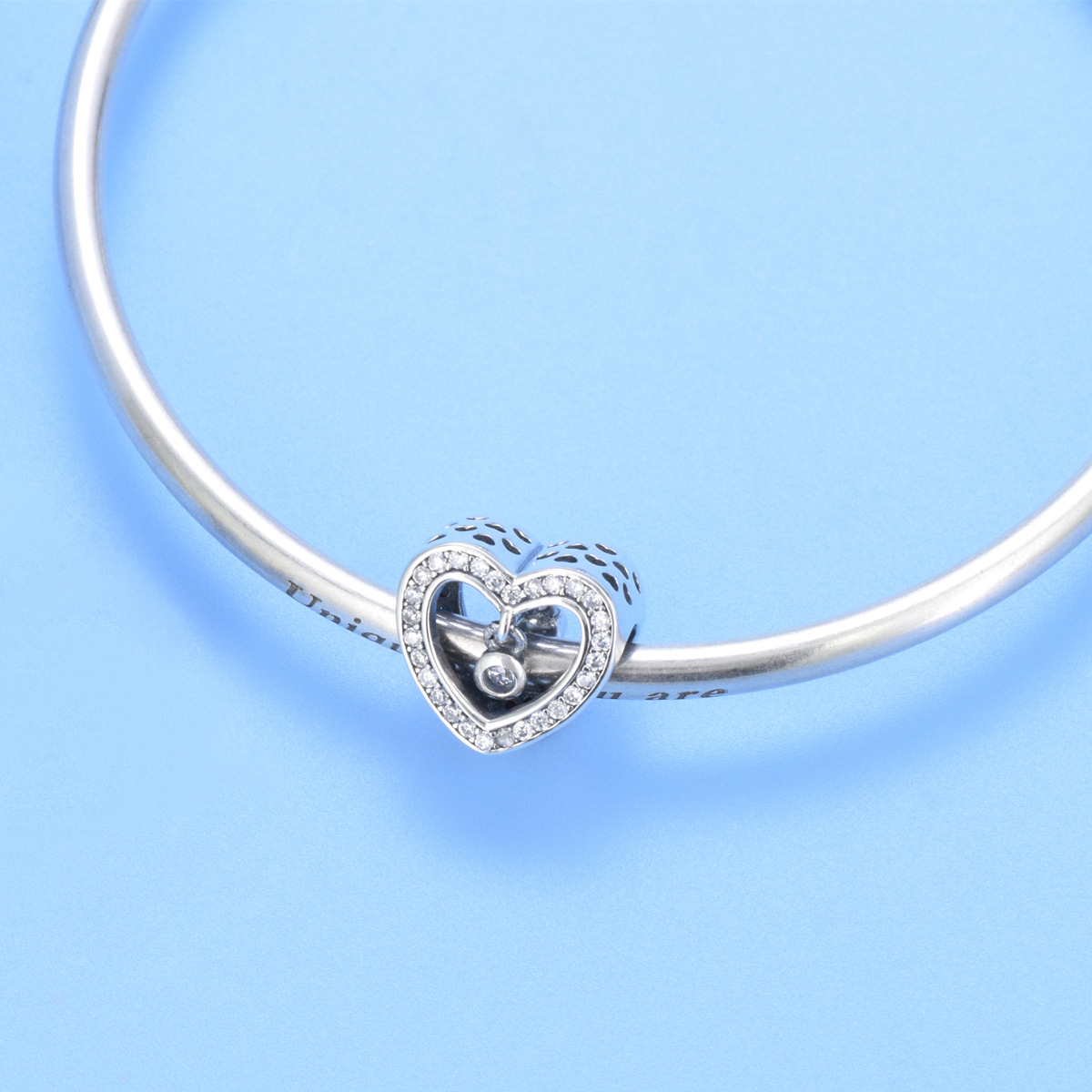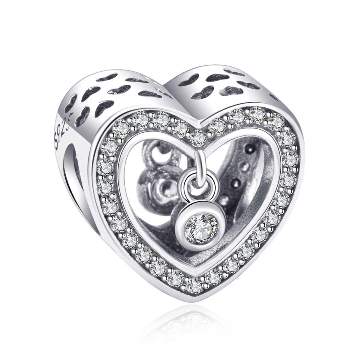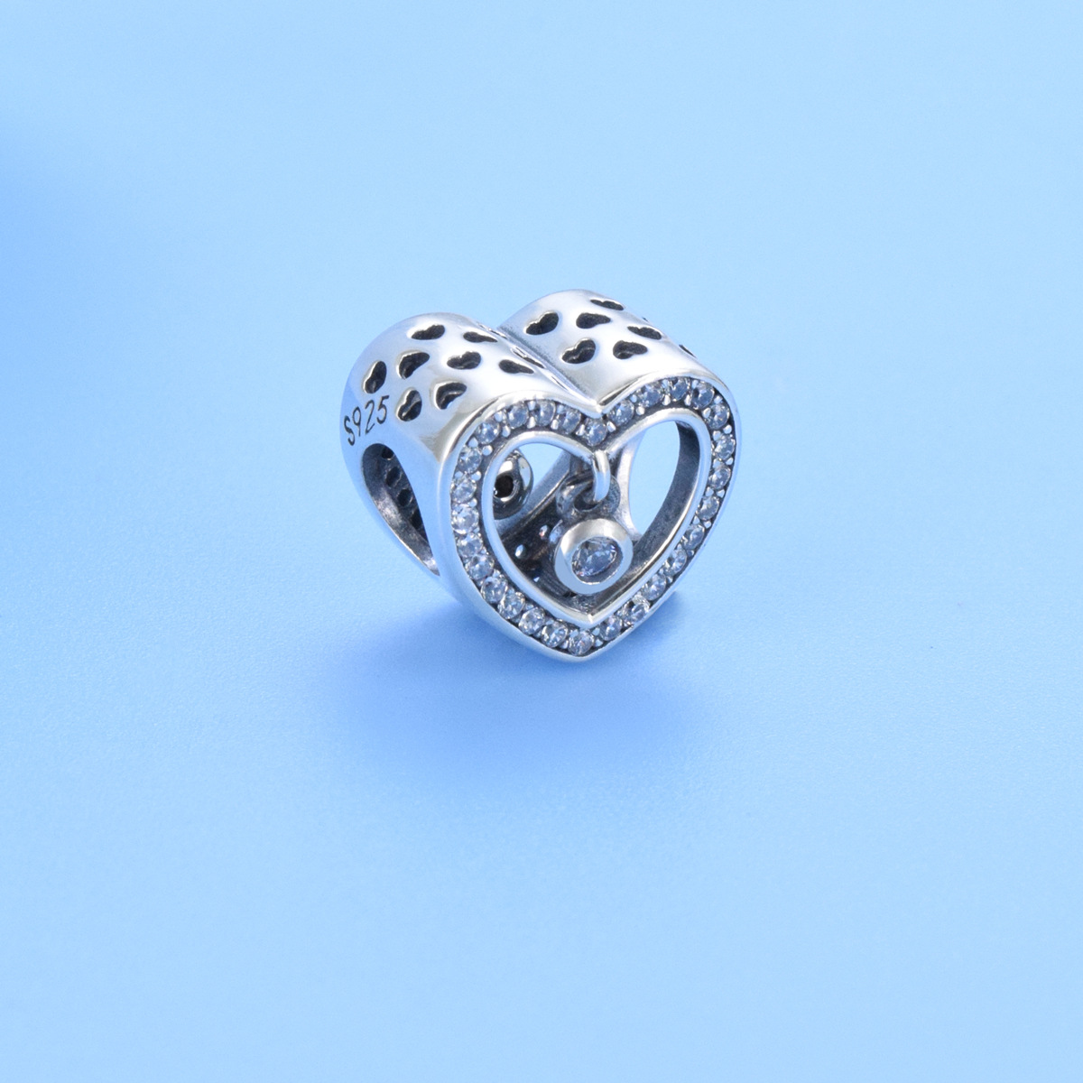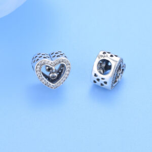S925 sterling silver beaded DIY pendant hollow heart