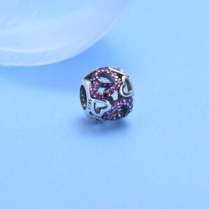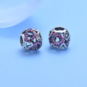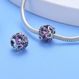 S925 sterling silver beaded DIY pendant hollow purple heart