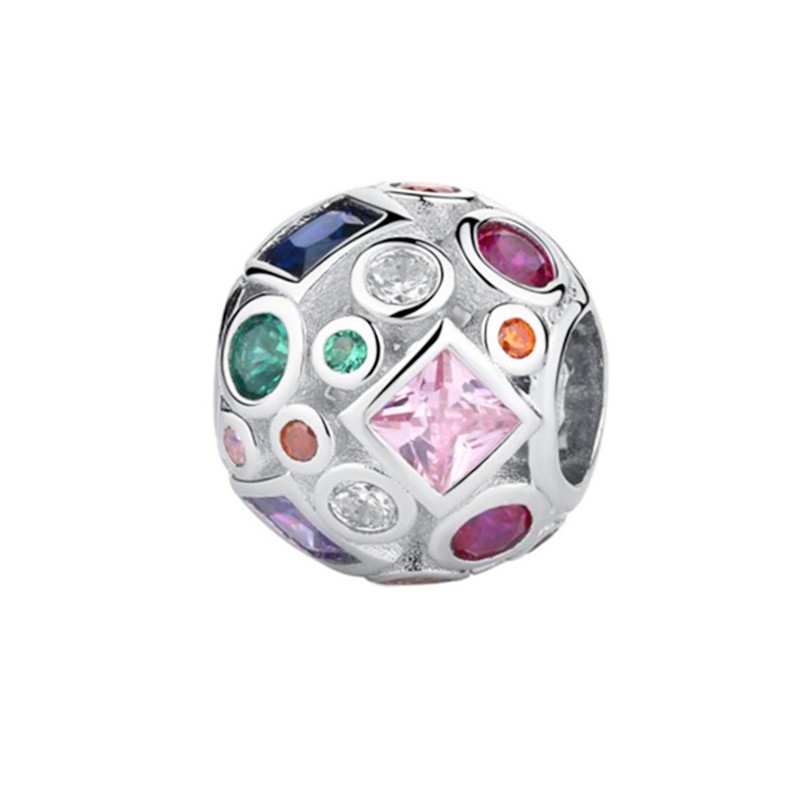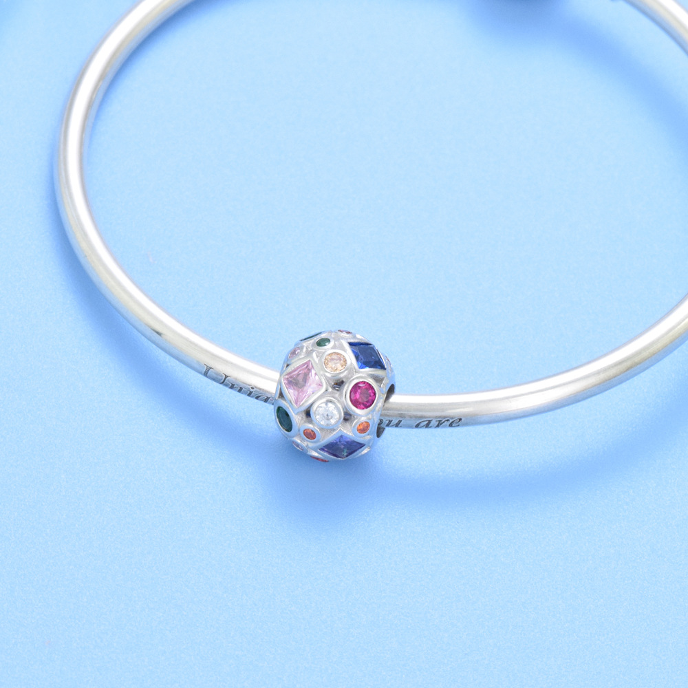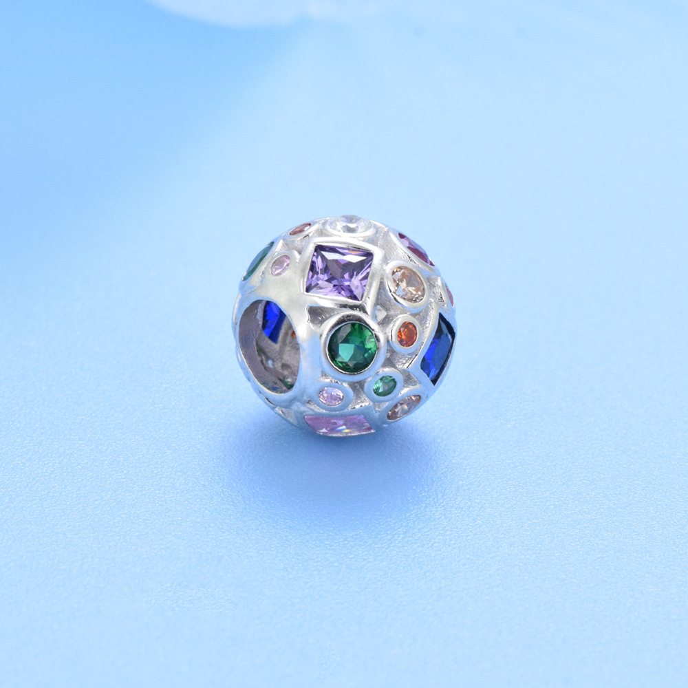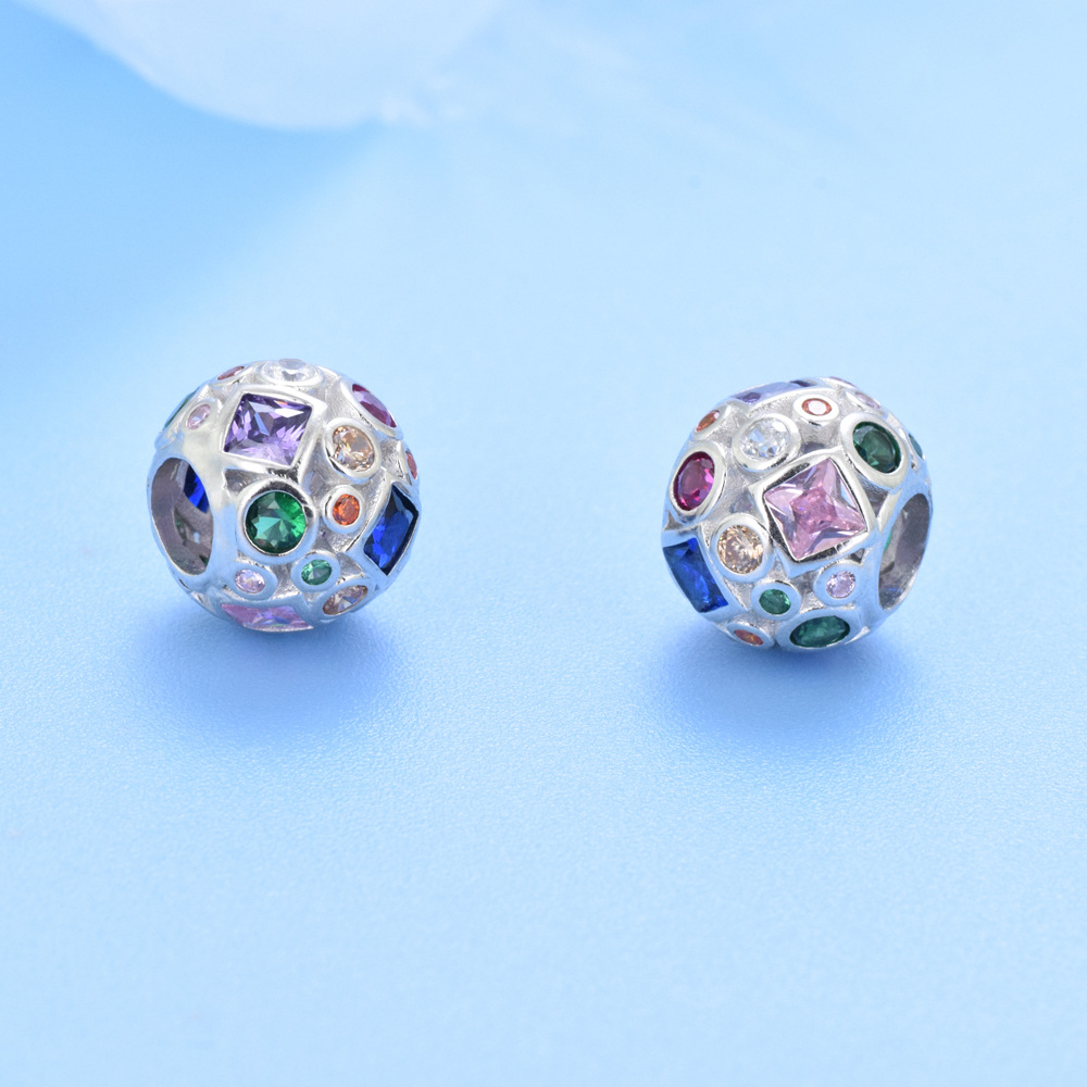 S925 sterling silver beaded DIY pendant inlay with colorful zircon