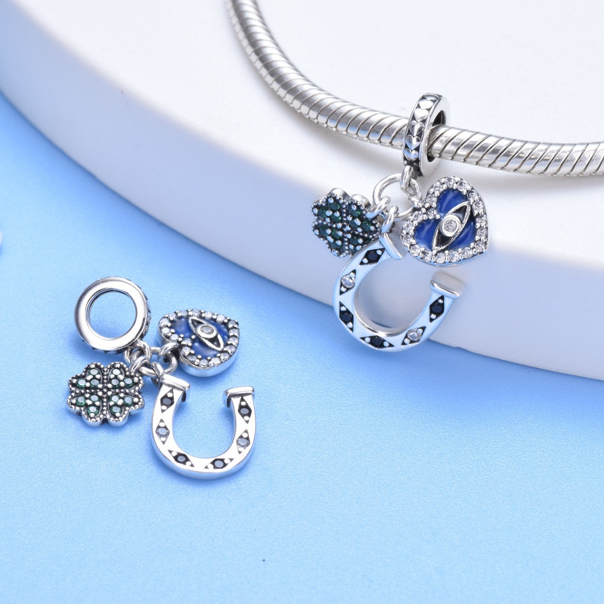 S925 sterling silver beaded DIY pendant love