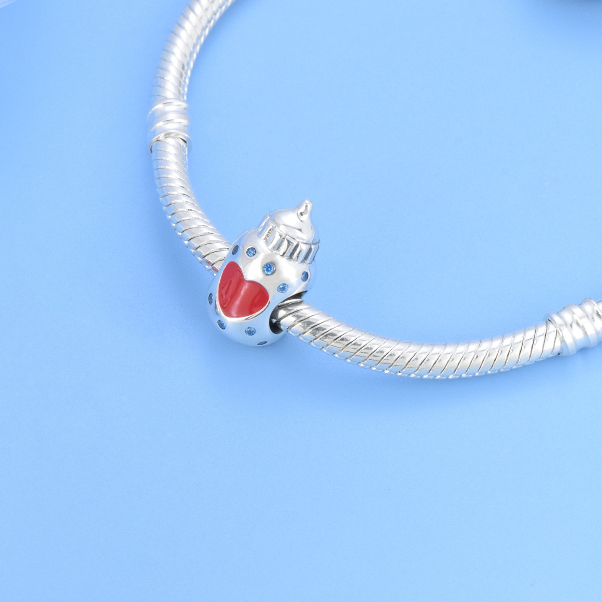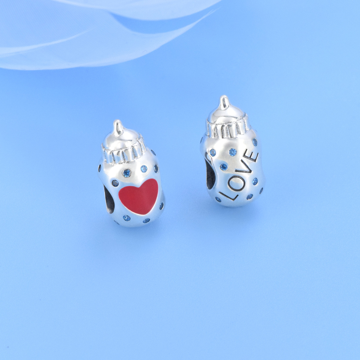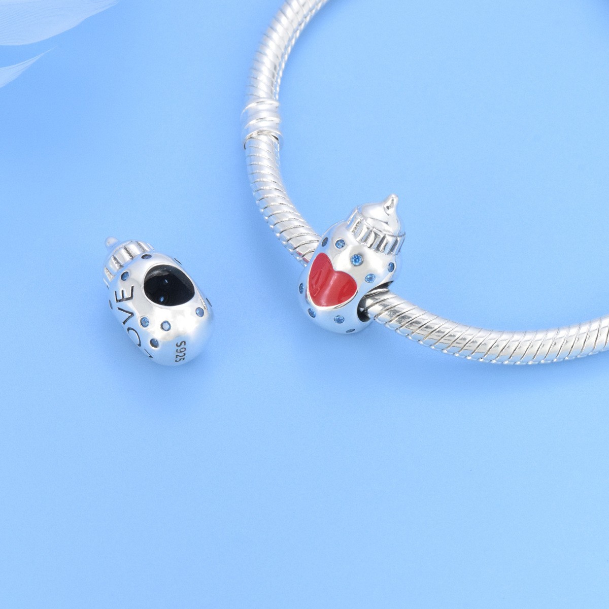 S925 sterling silver beaded DIY pendant love baby bottle
