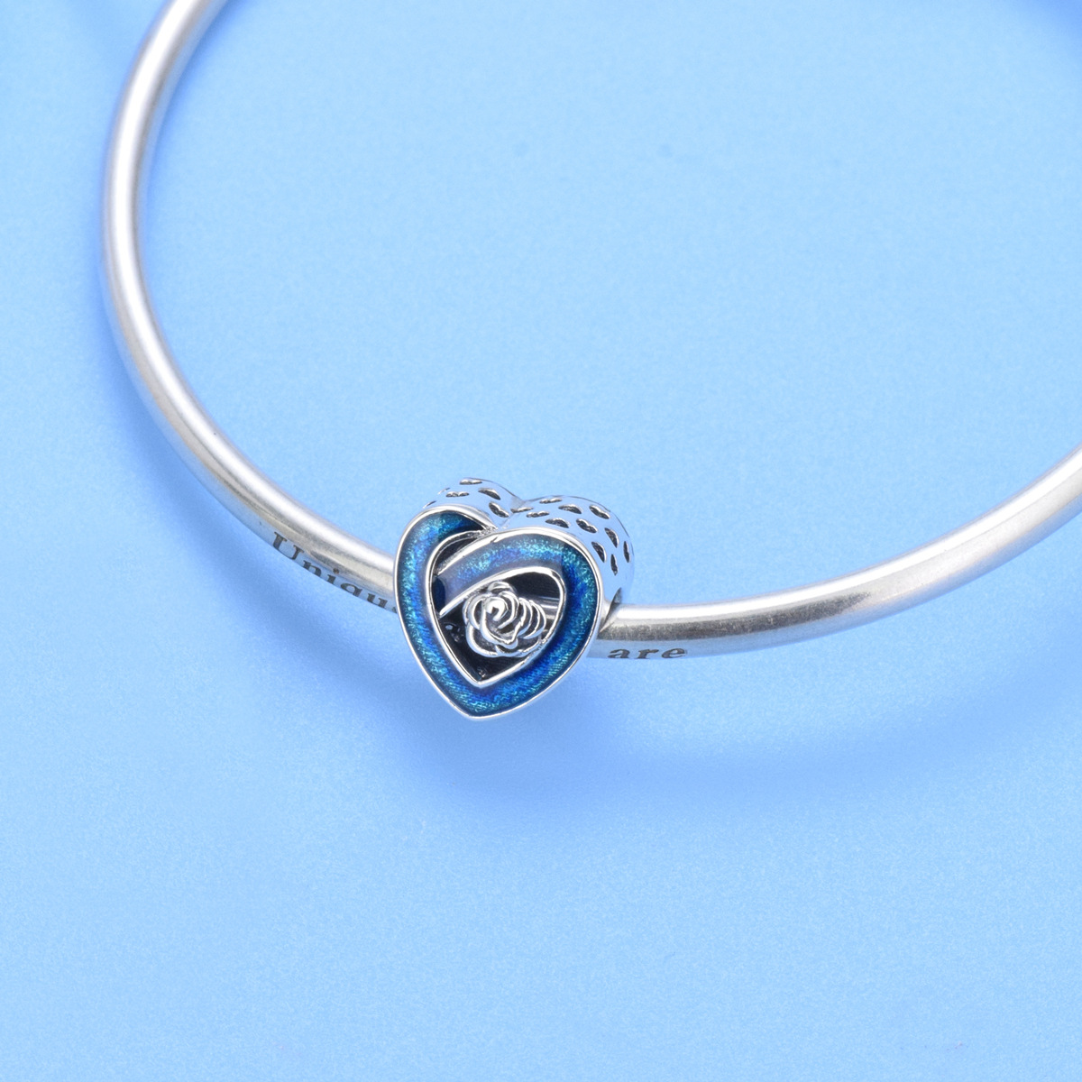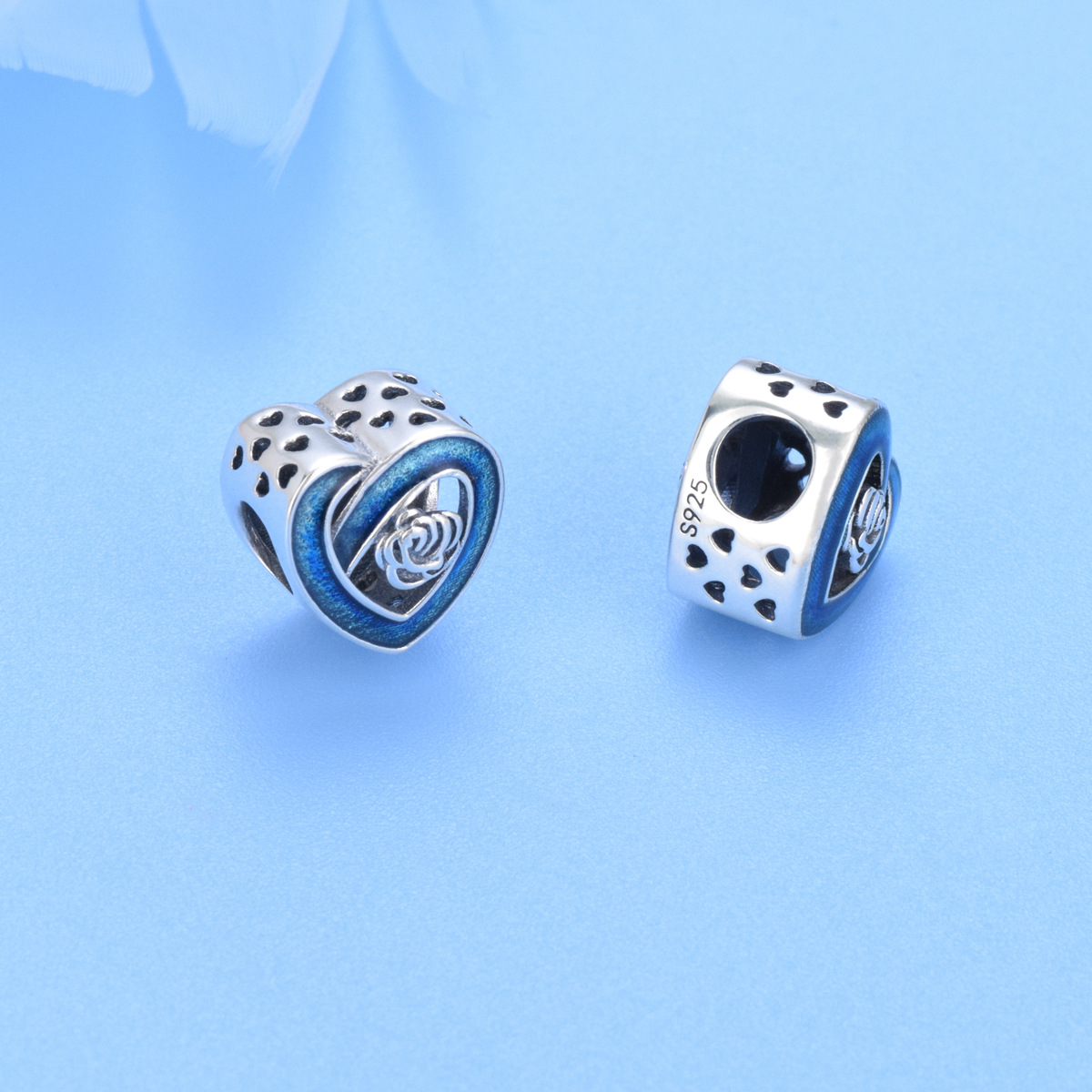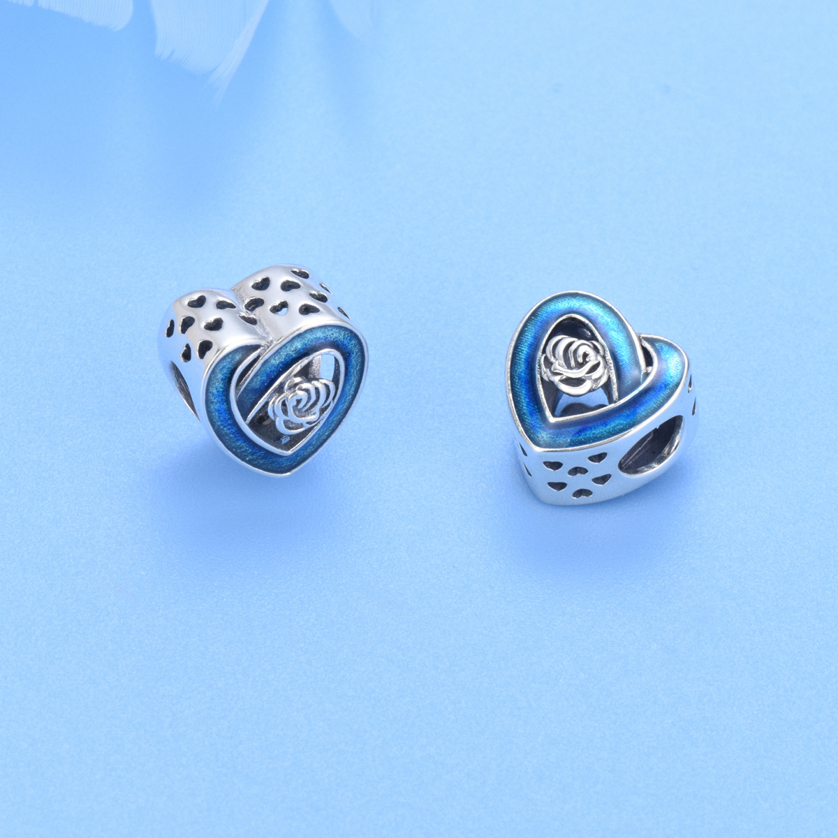 S925 Sterling Silver Beaded DIY Pendant Love Blue Flowers