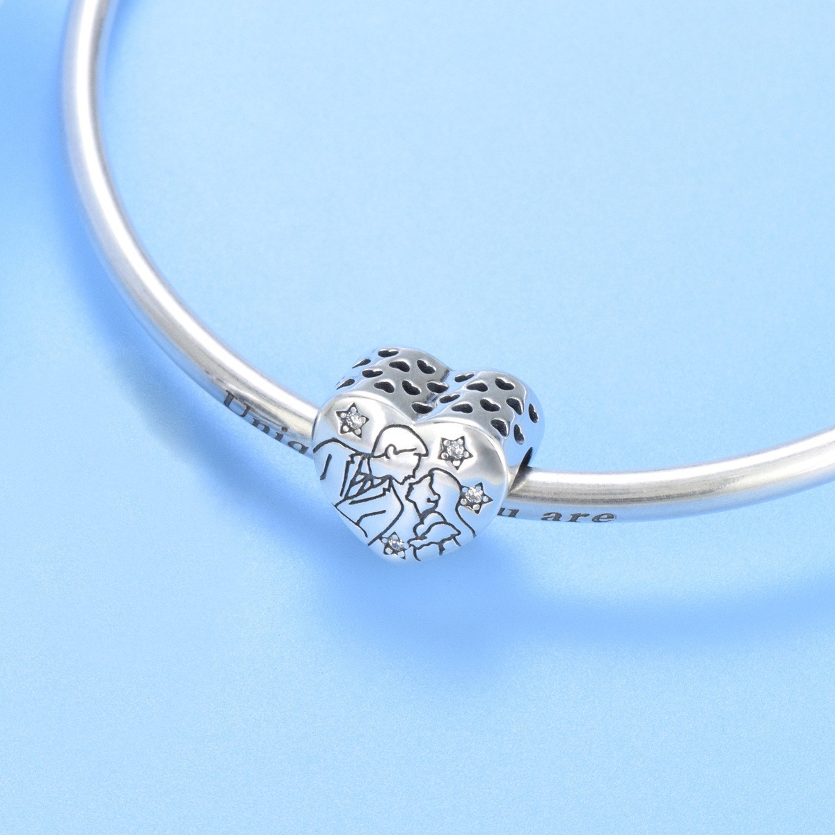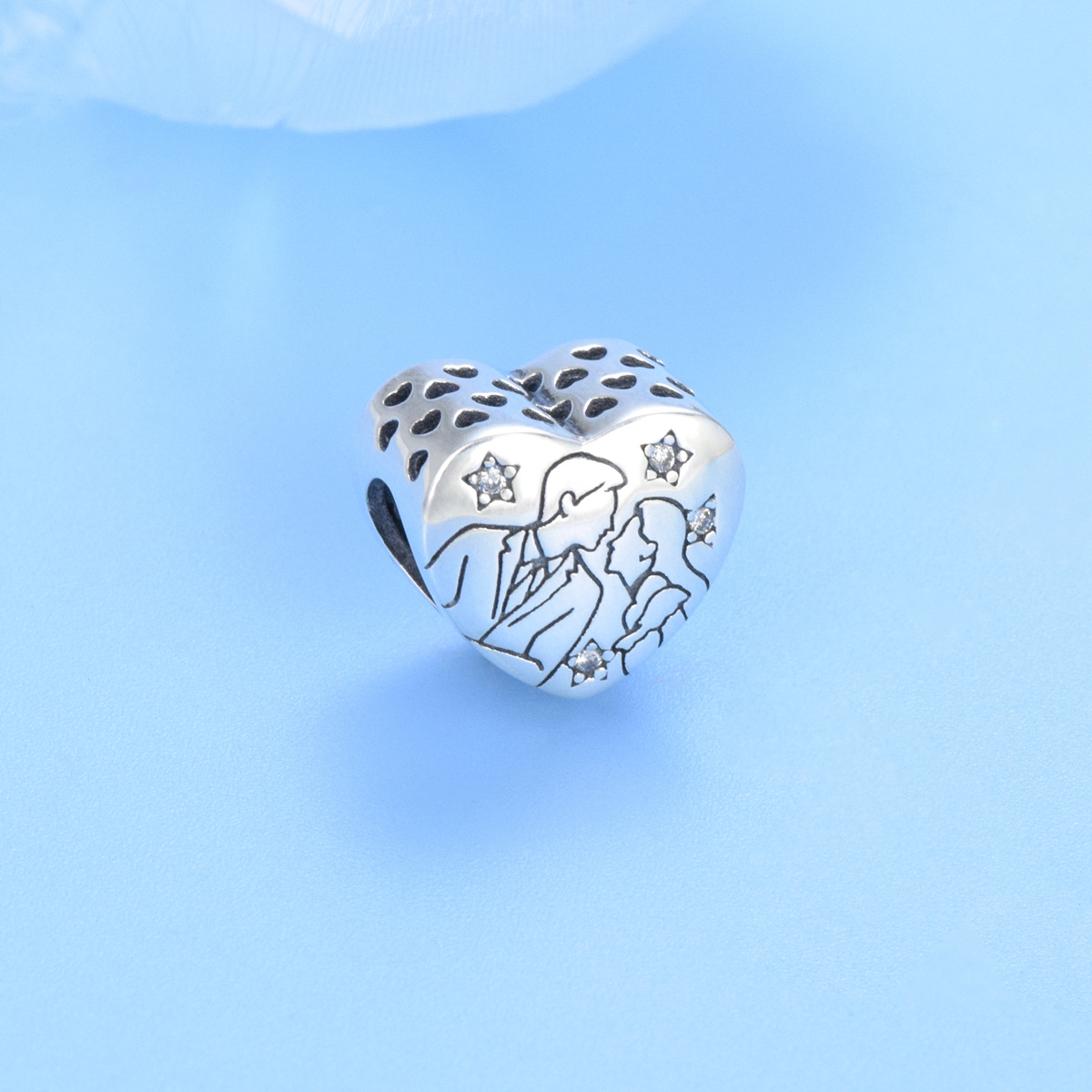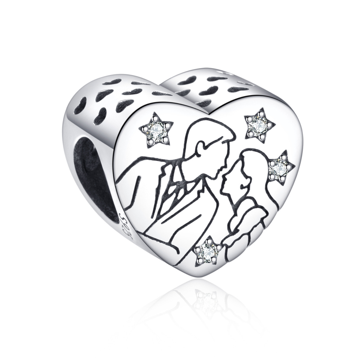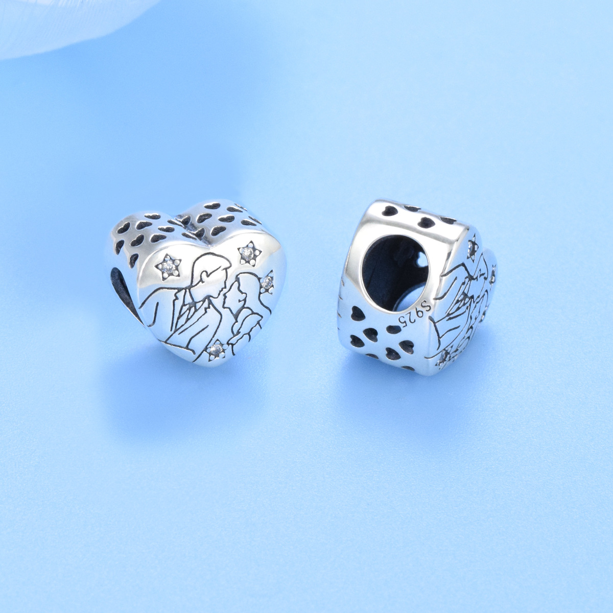 S925 sterling silver beaded DIY pendant love couple