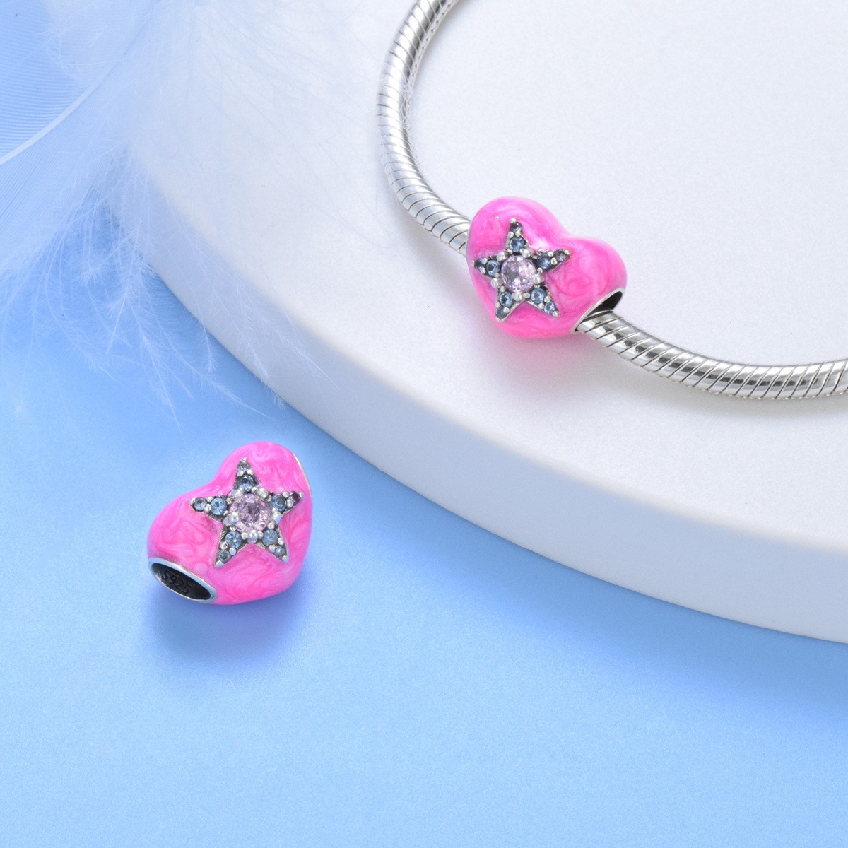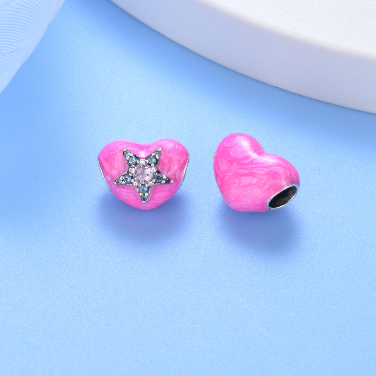 S925 sterling silver beaded DIY pendant love five-pointed star