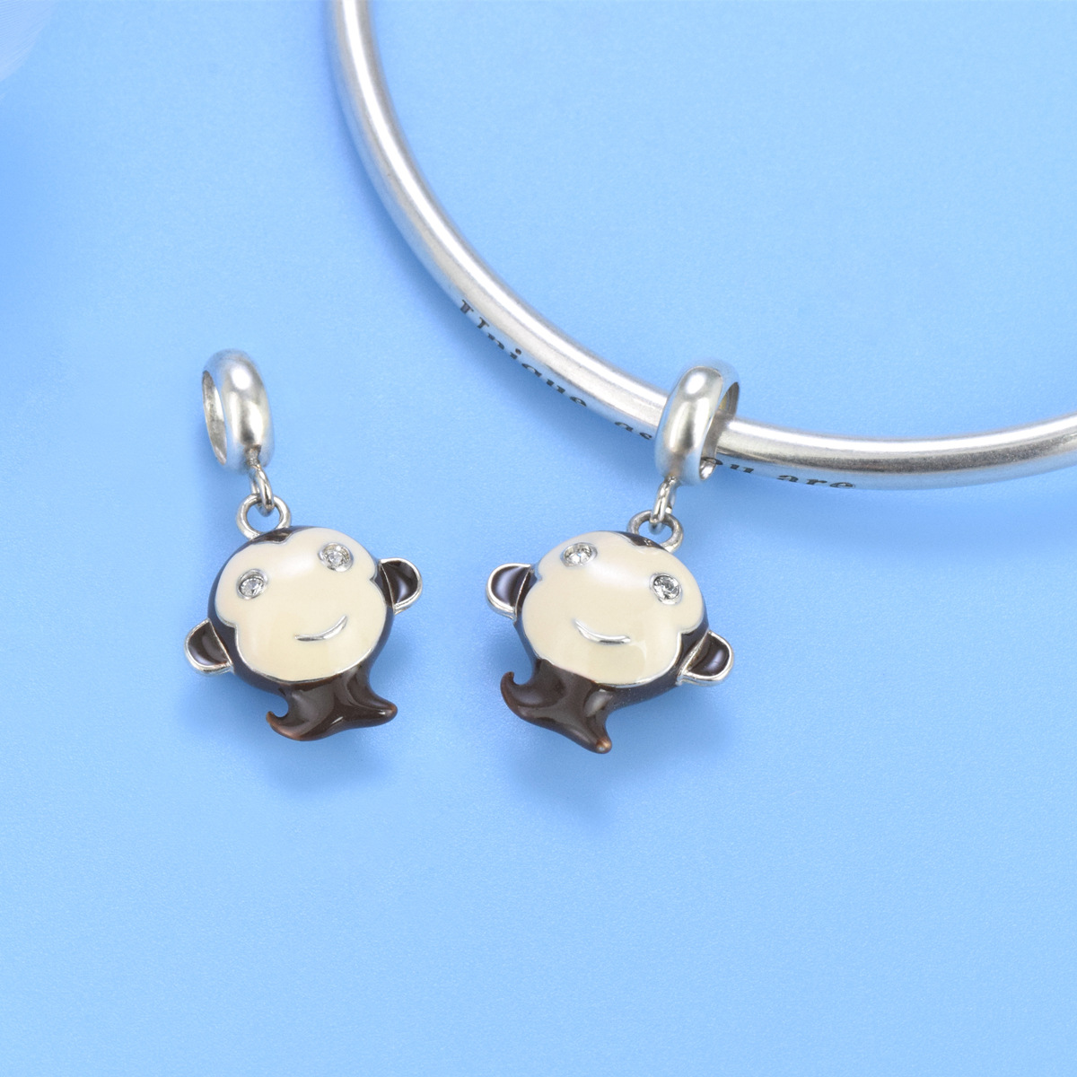 S925 sterling silver beaded DIY pendant monkey