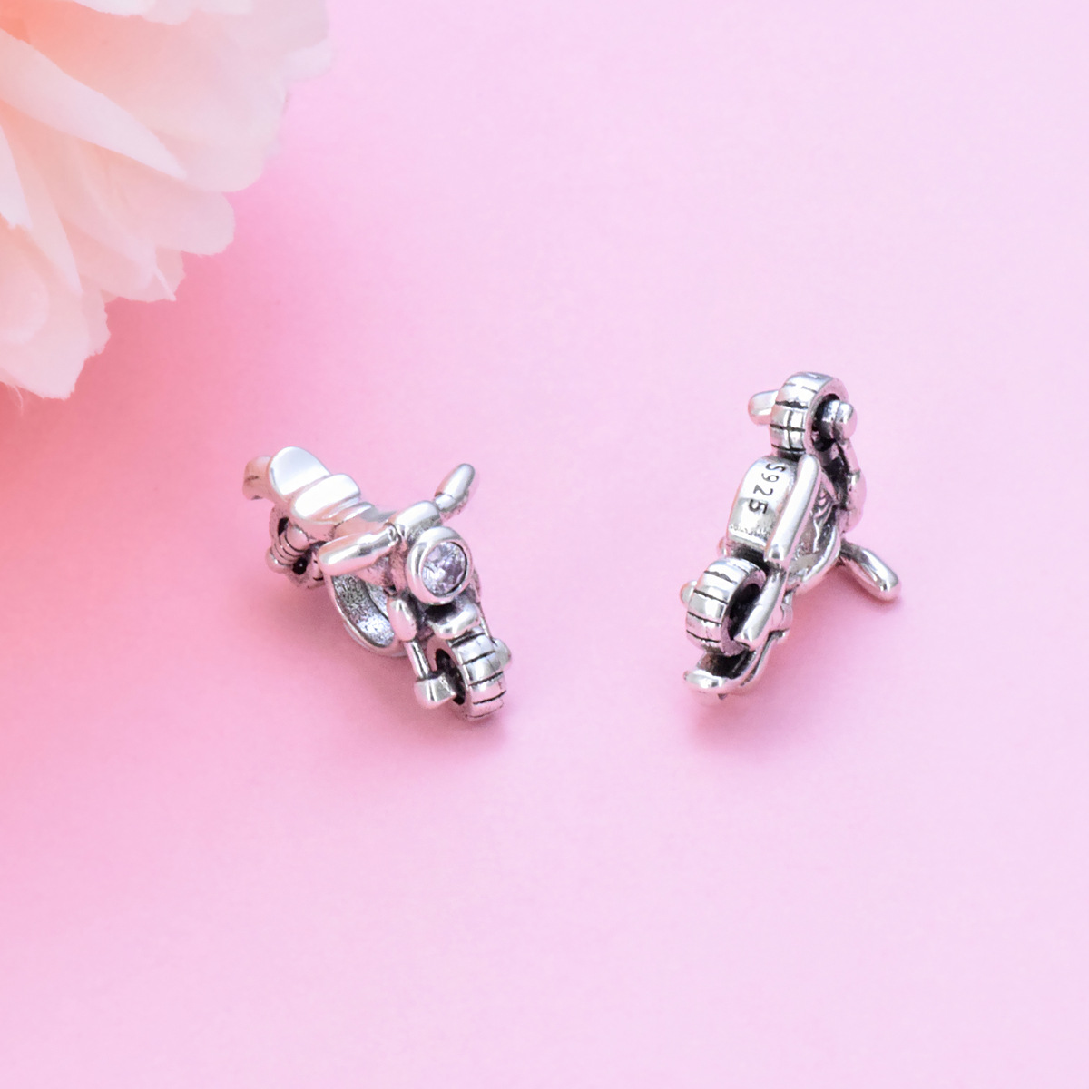 S925 Sterling Silver Beaded DIY Pendant Motorcycle