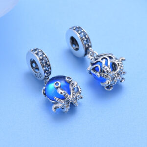 S925 Sterling Silver Beaded DIY Pendant Octopus