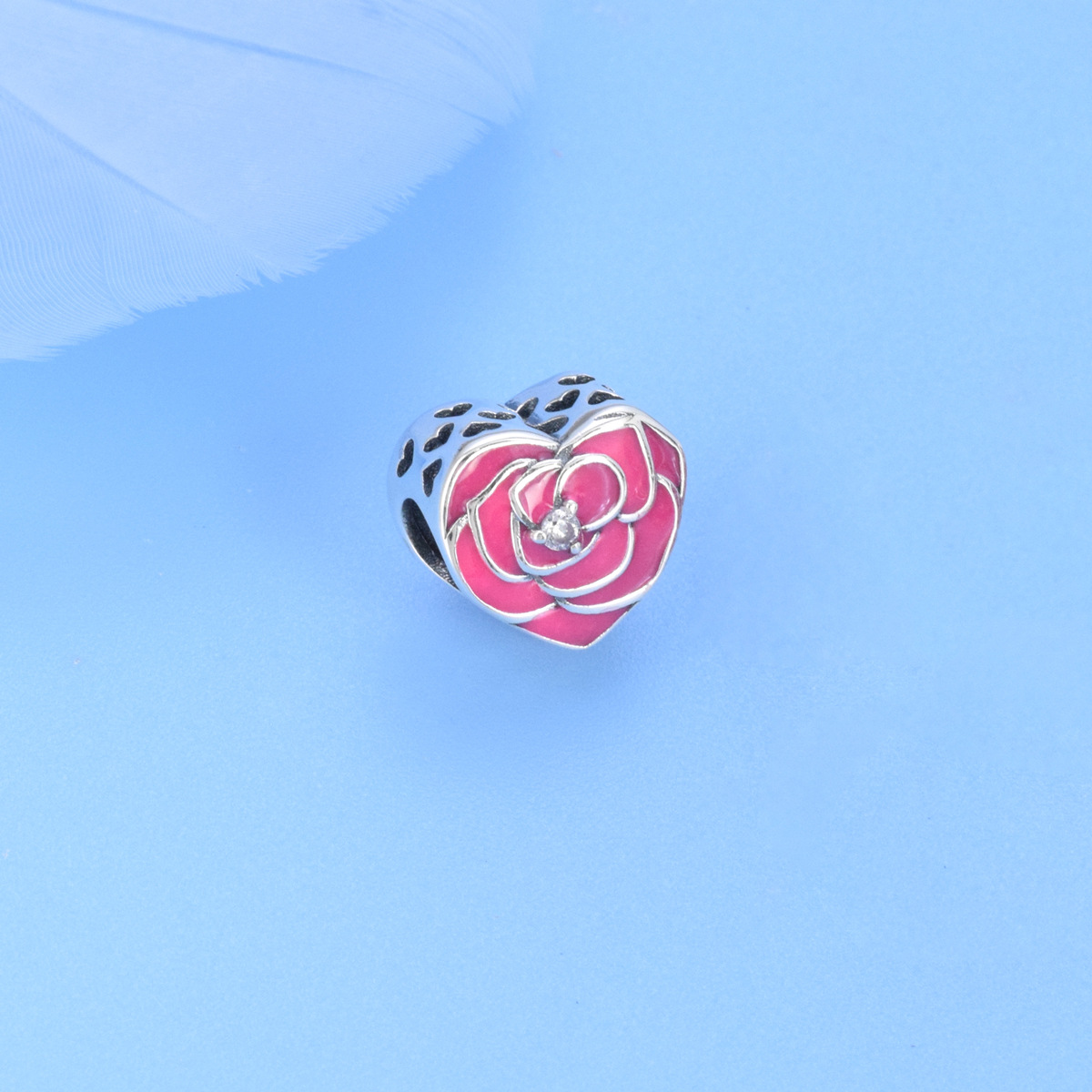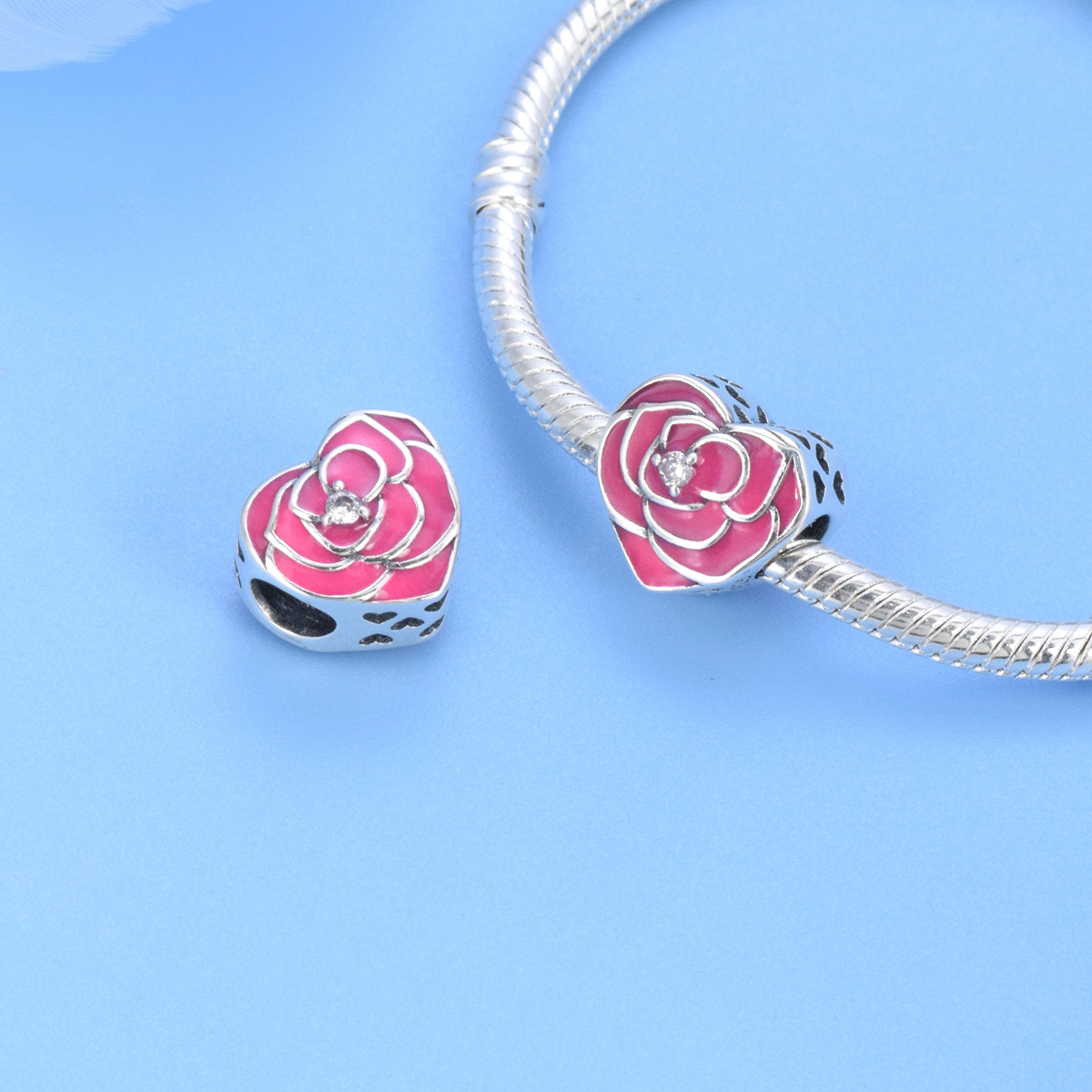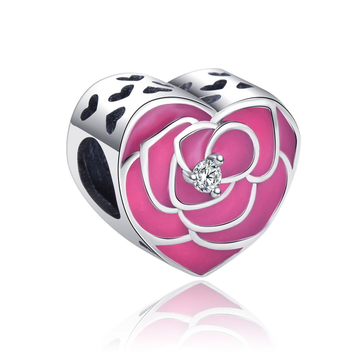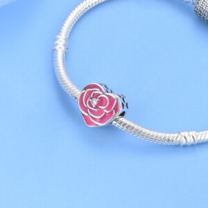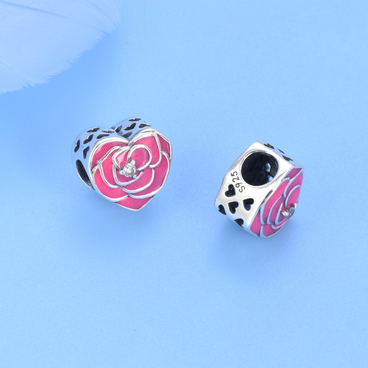 S925 Sterling Silver Beaded DIY Pendant Pink Flowers