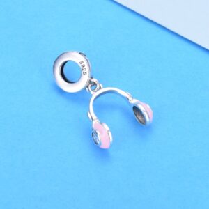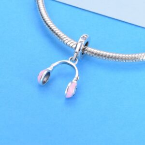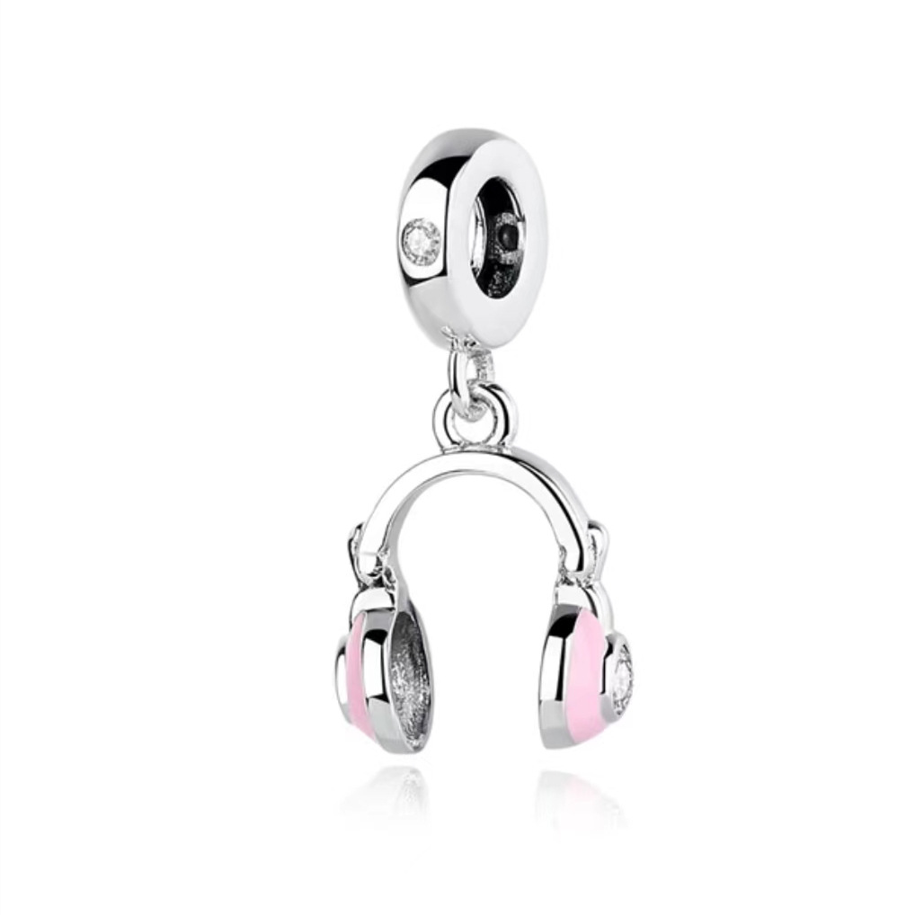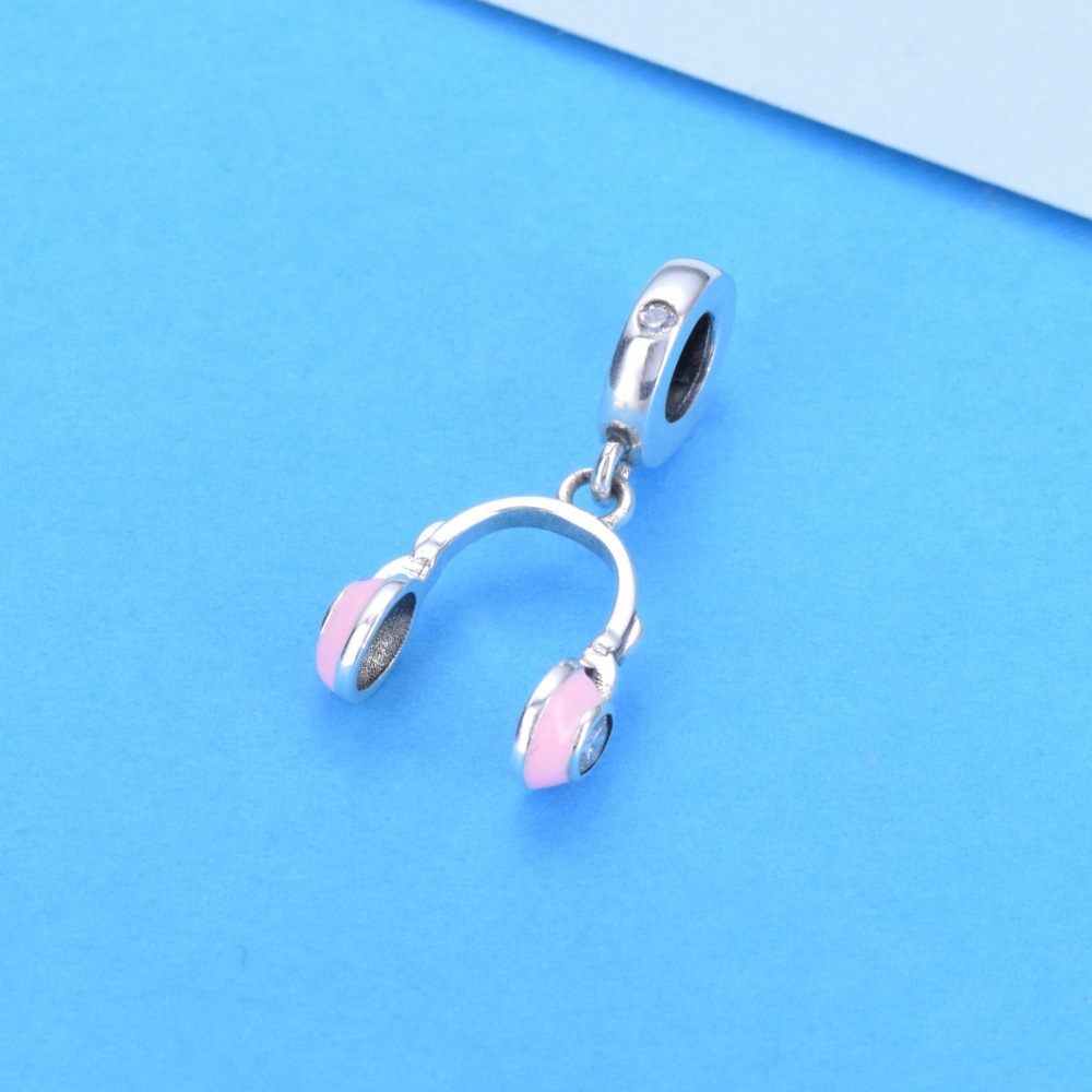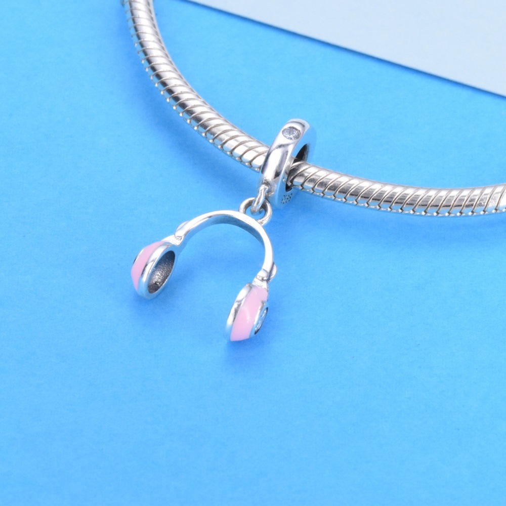 S925 sterling silver beaded DIY pendant pink headphones