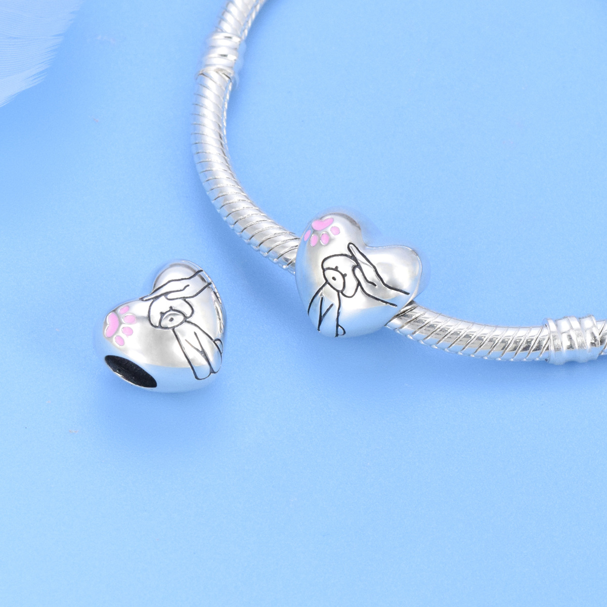 S925 sterling silver beaded DIY pendant puppy