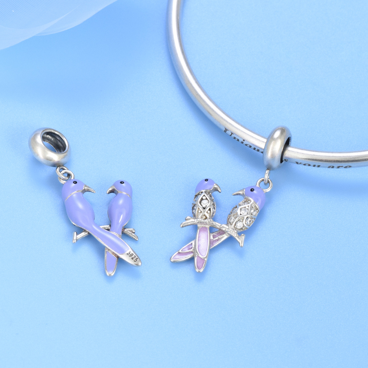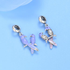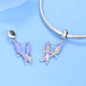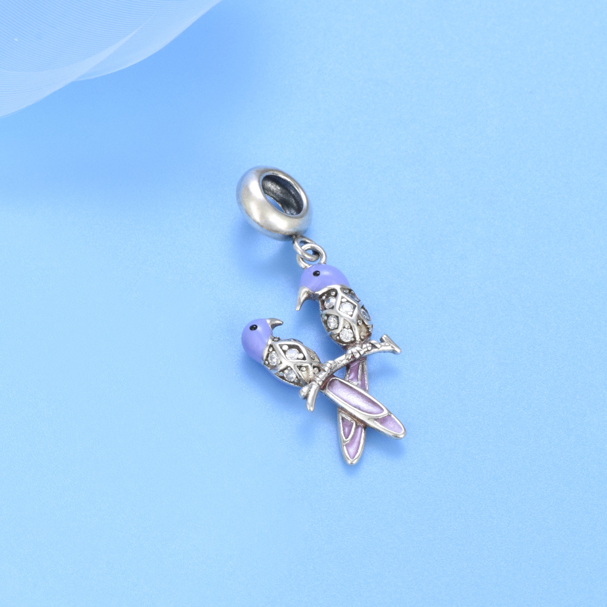 S925 Sterling Silver Beaded DIY Pendant Purple Lovebird