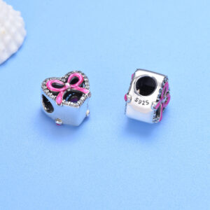 S925 Sterling Silver Beaded DIY Pendant Red Bow