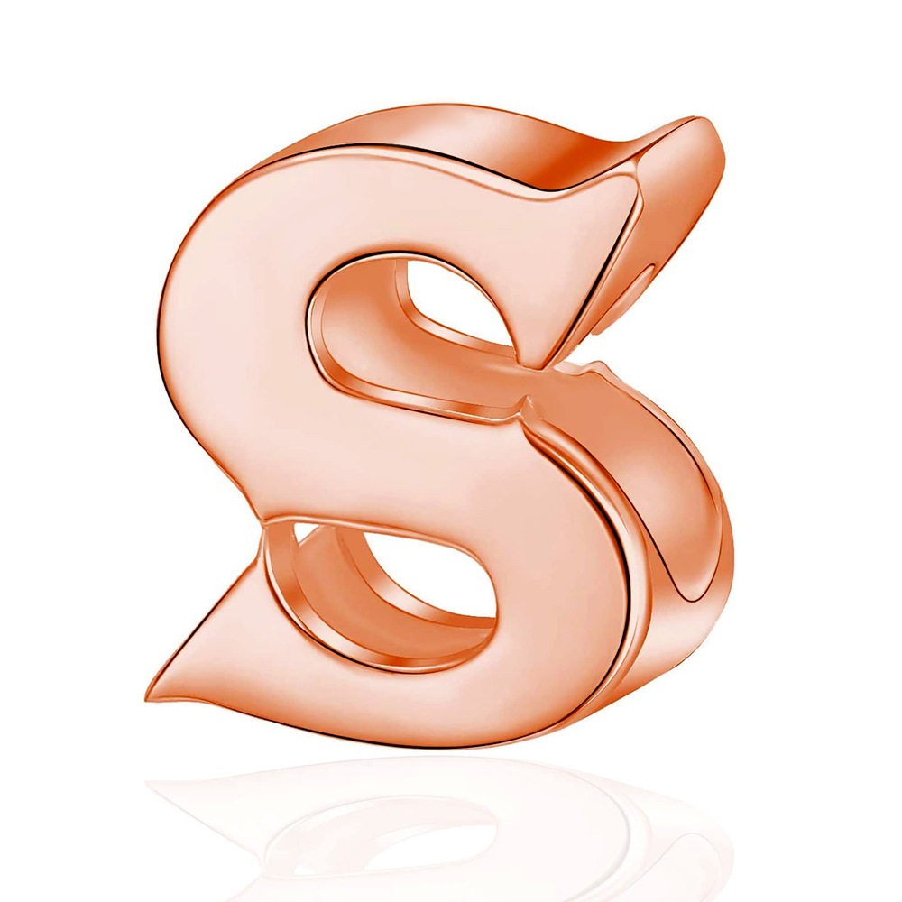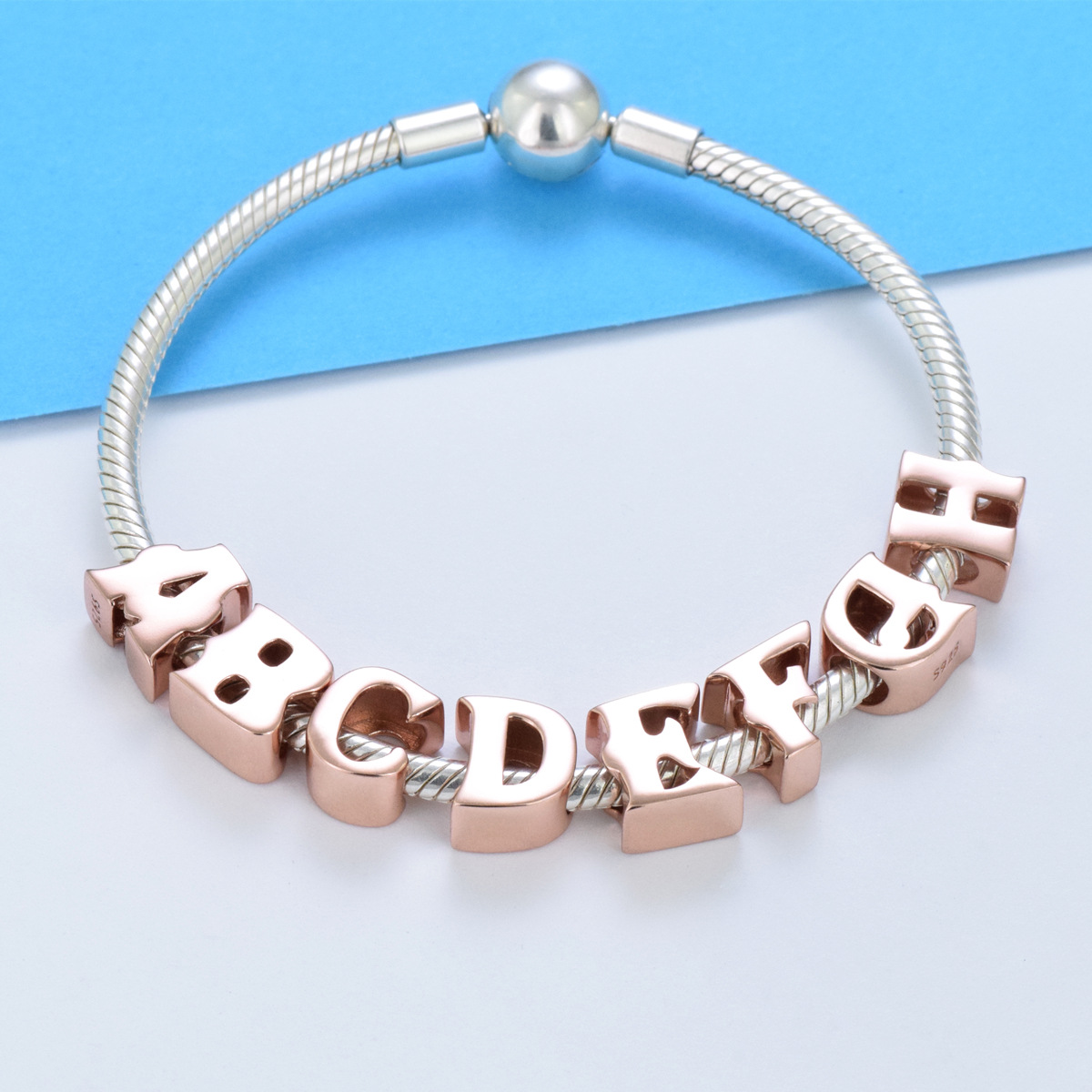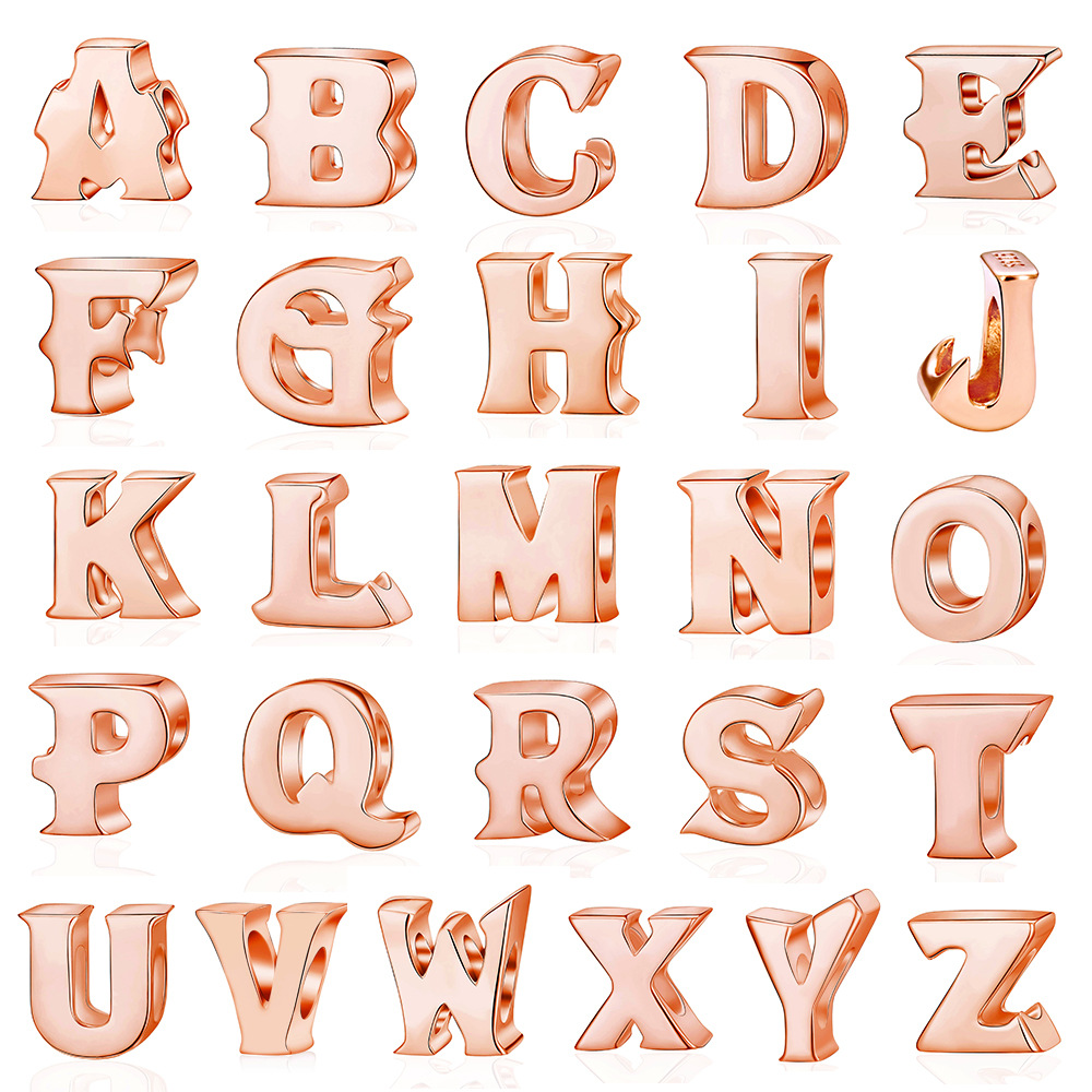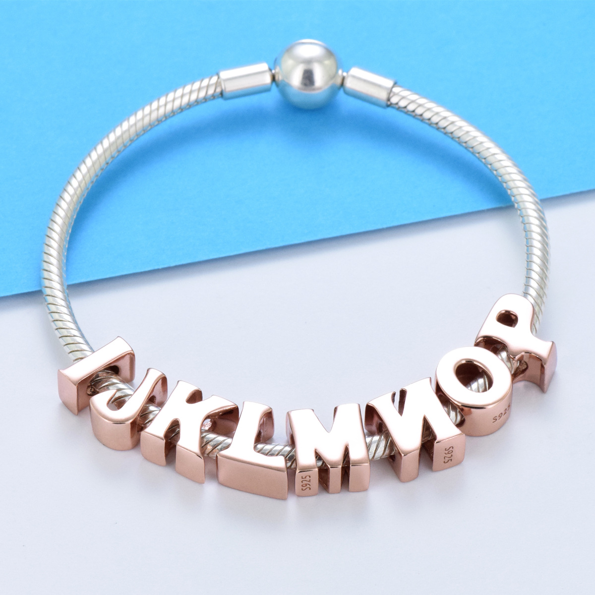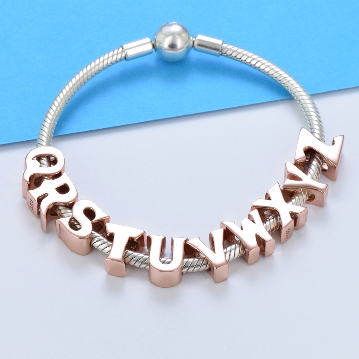 S925 sterling silver beaded DIY pendant rose gold 26 letters