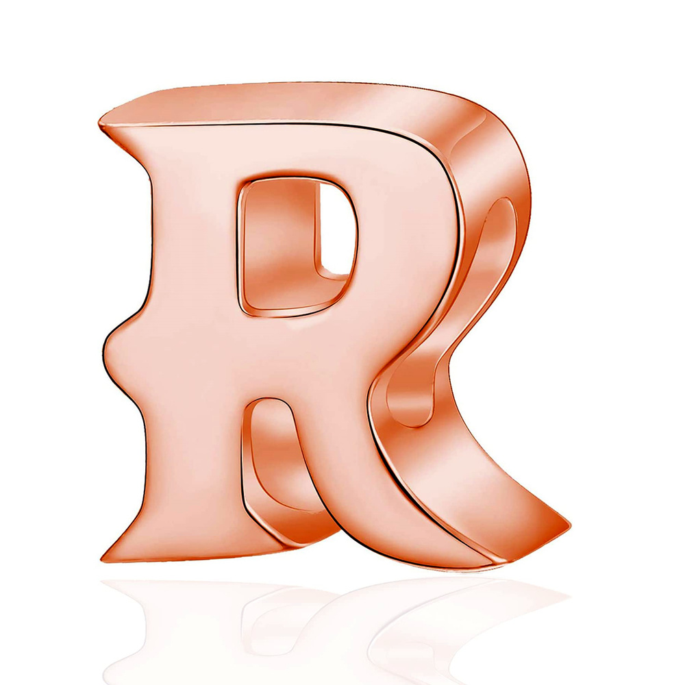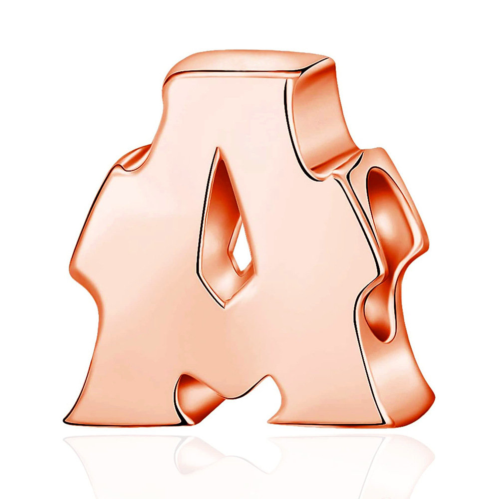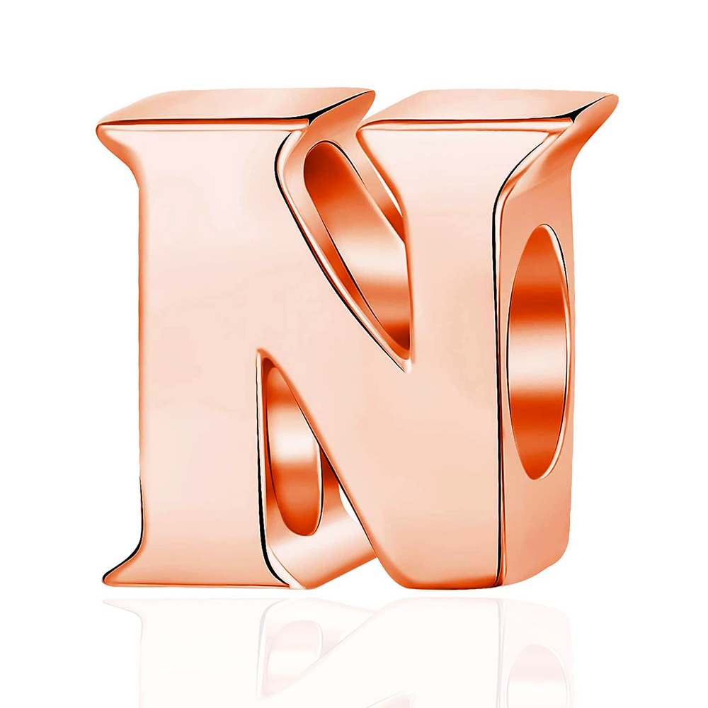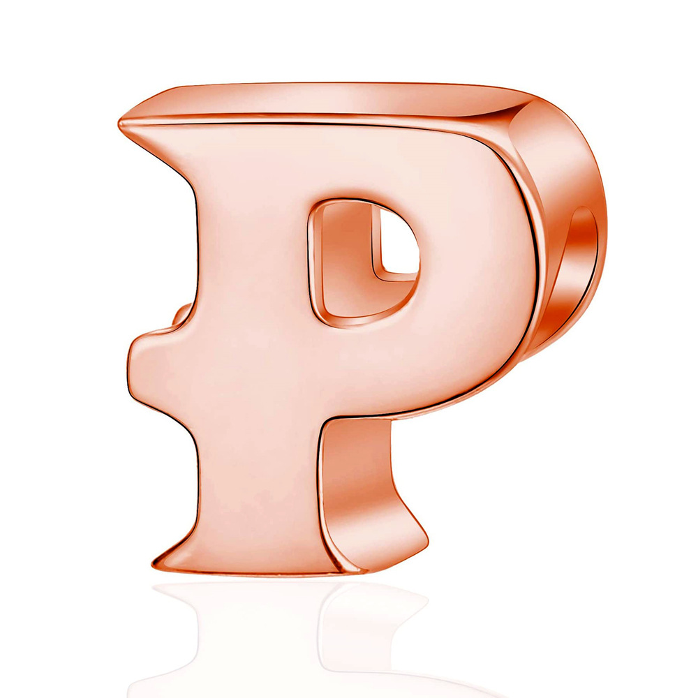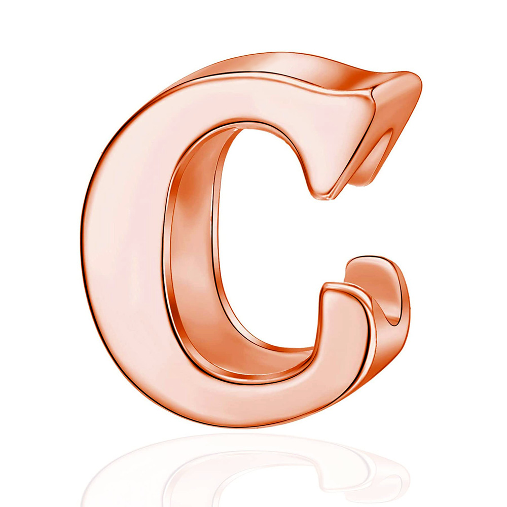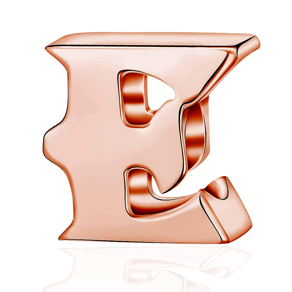 S925 sterling silver beaded DIY pendant rose gold 26 letters