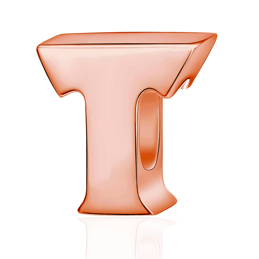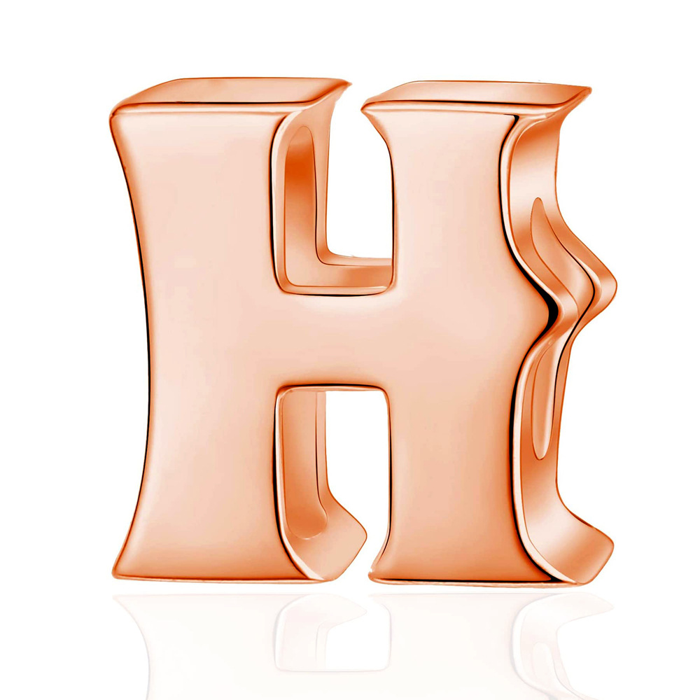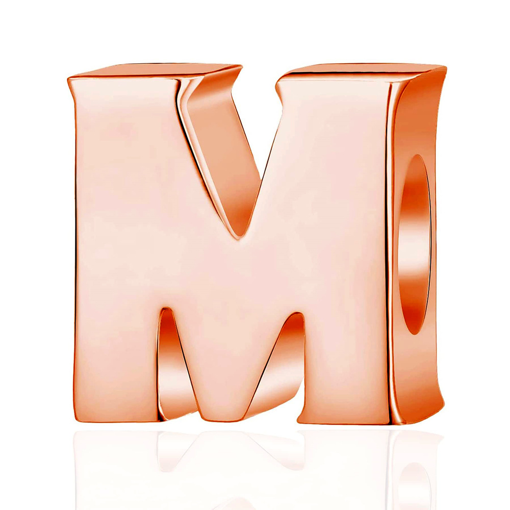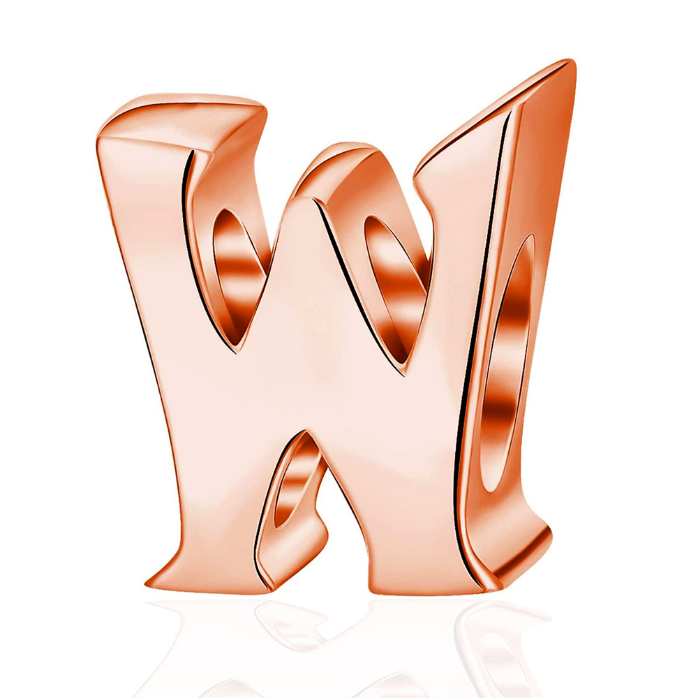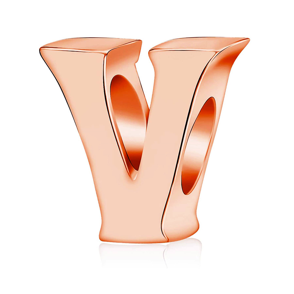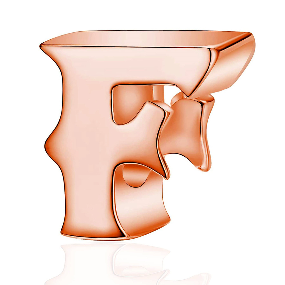 S925 sterling silver beaded DIY pendant rose gold 26 letters