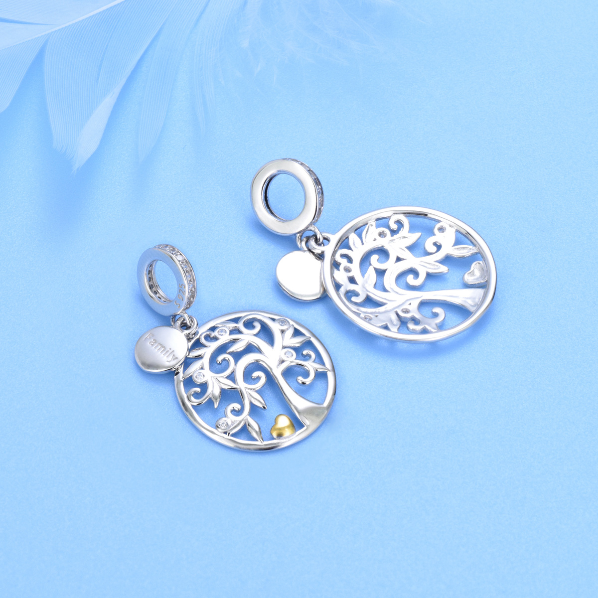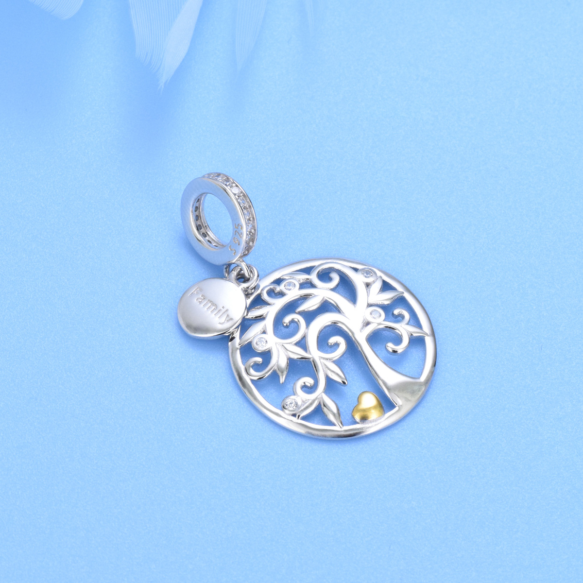 S925 Sterling Silver Beaded DIY Pendant Round Tree of Life