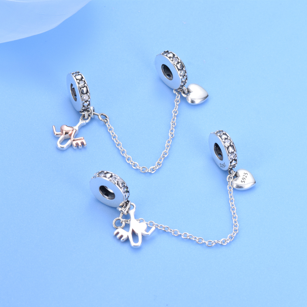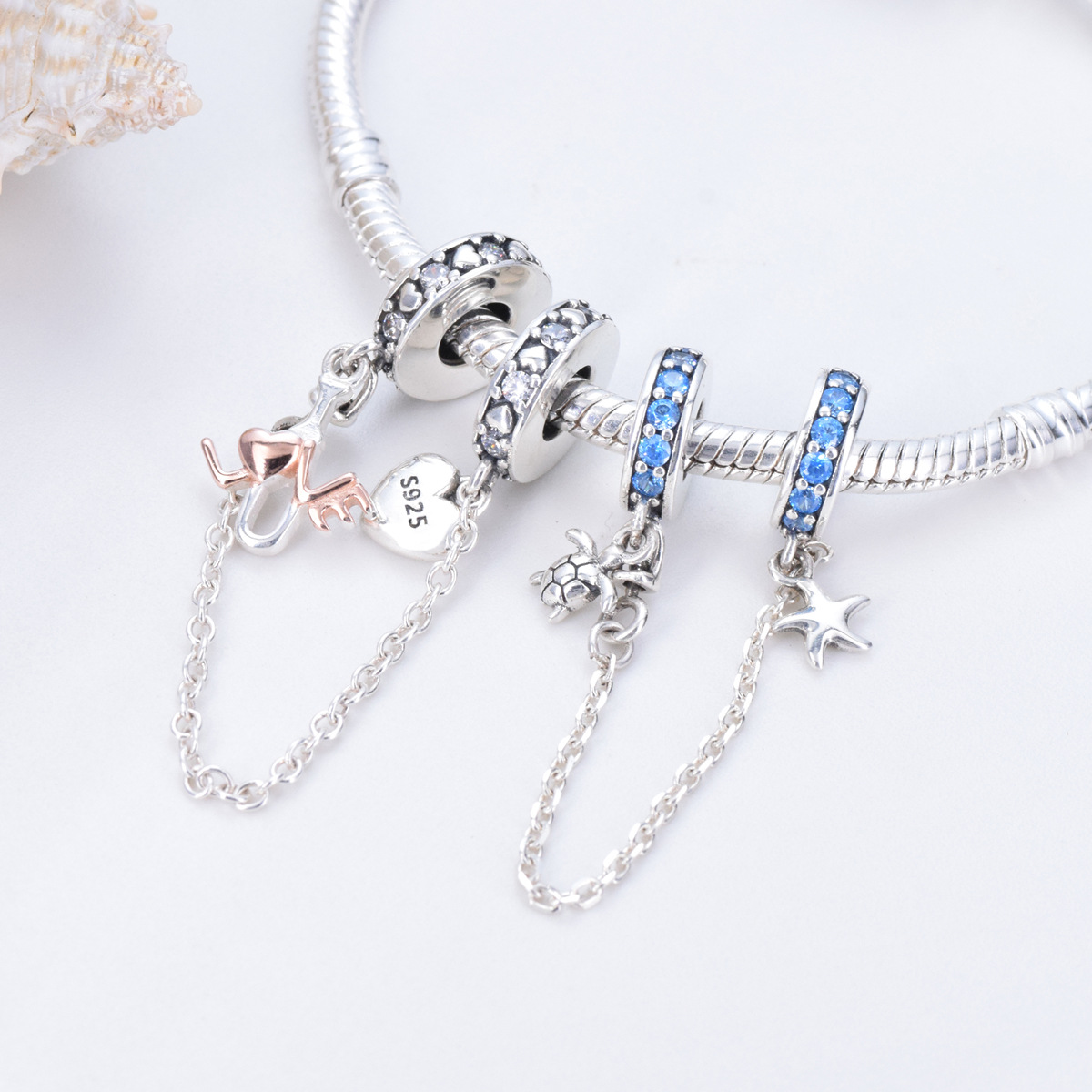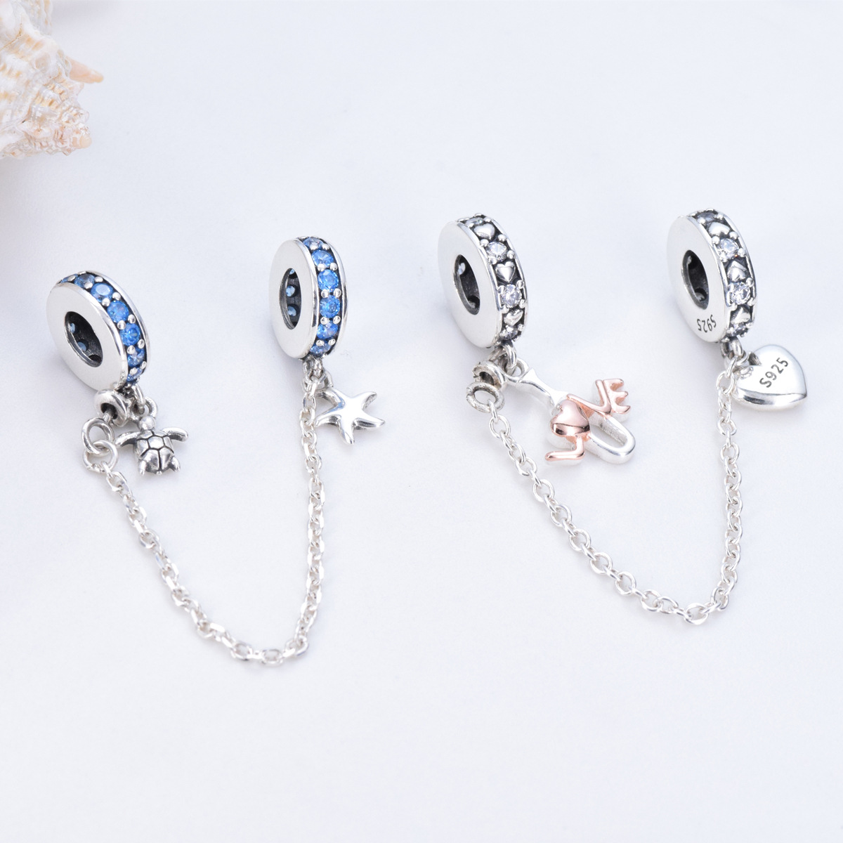S925 Sterling Silver Beaded DIY Pendant Safety Chain