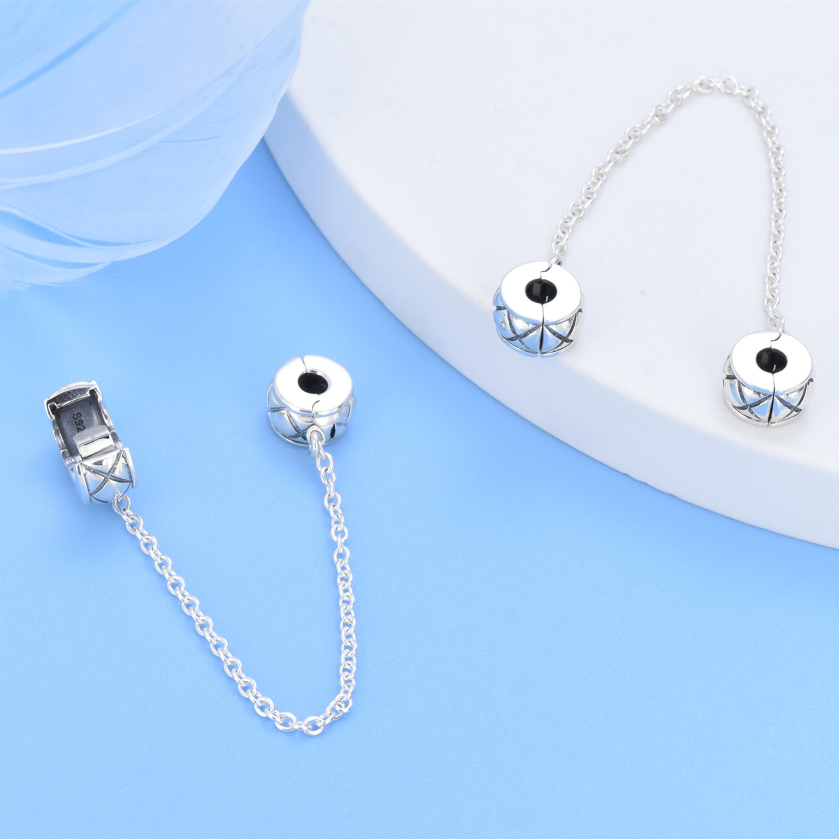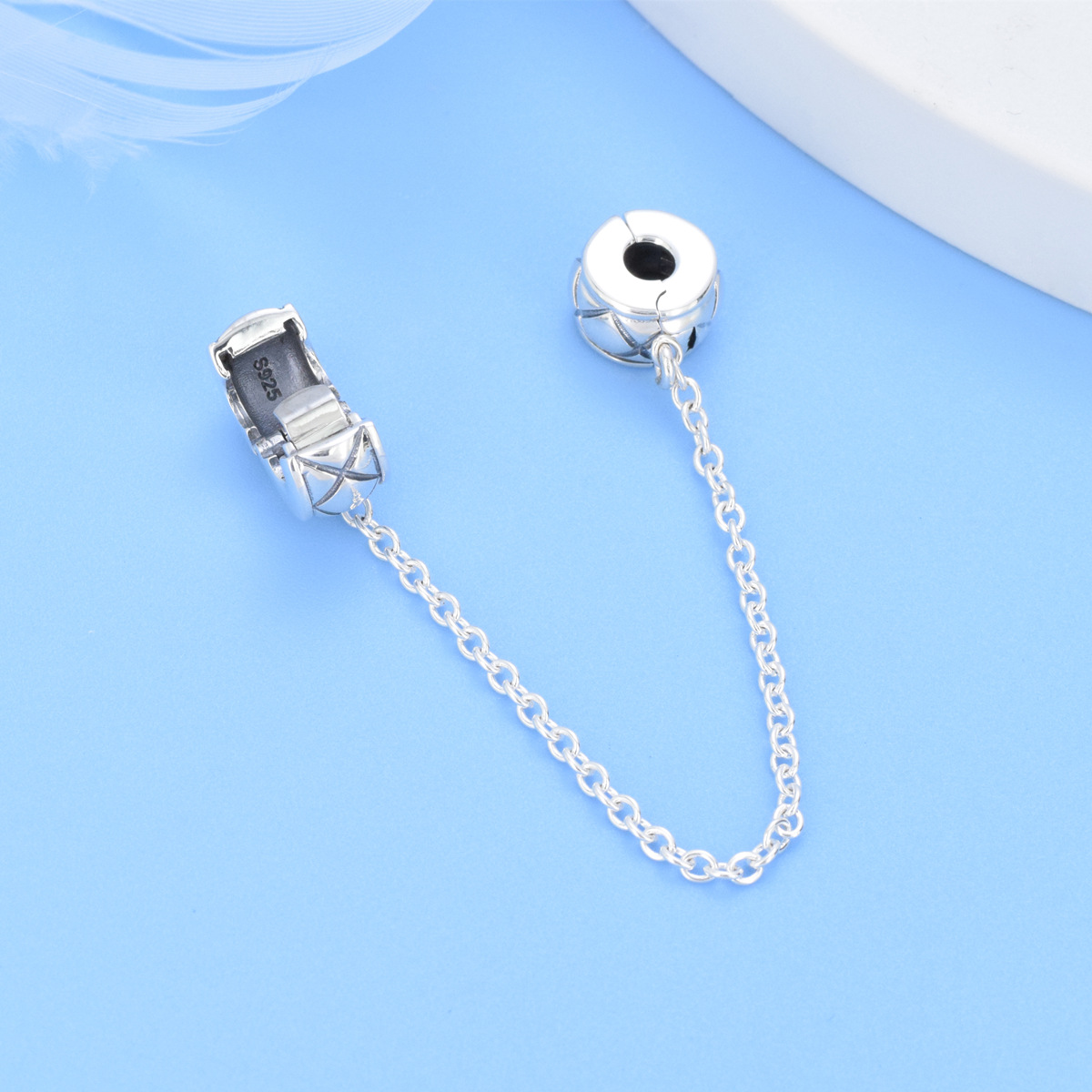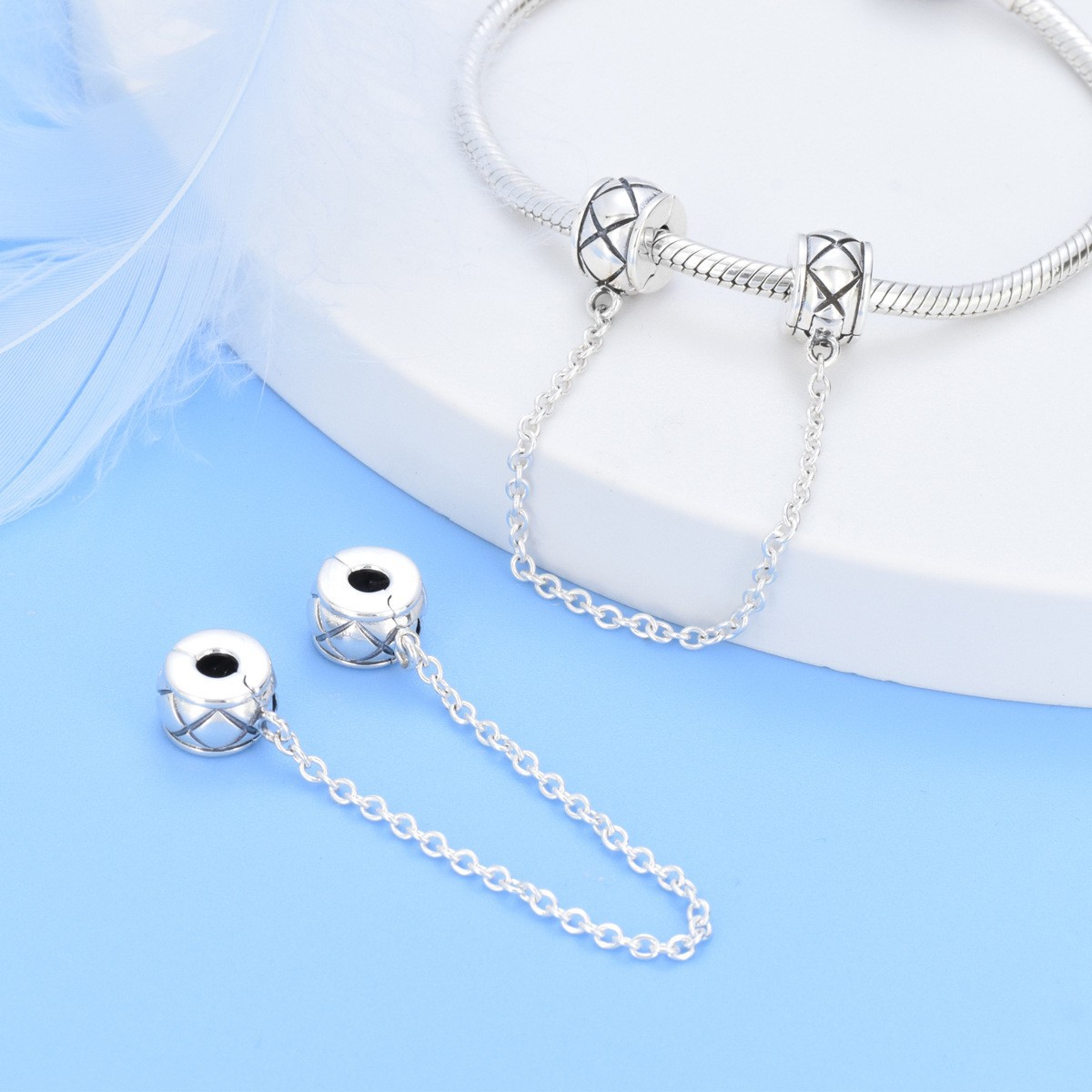 S925 Sterling Silver Beaded DIY Pendant Safety Chain