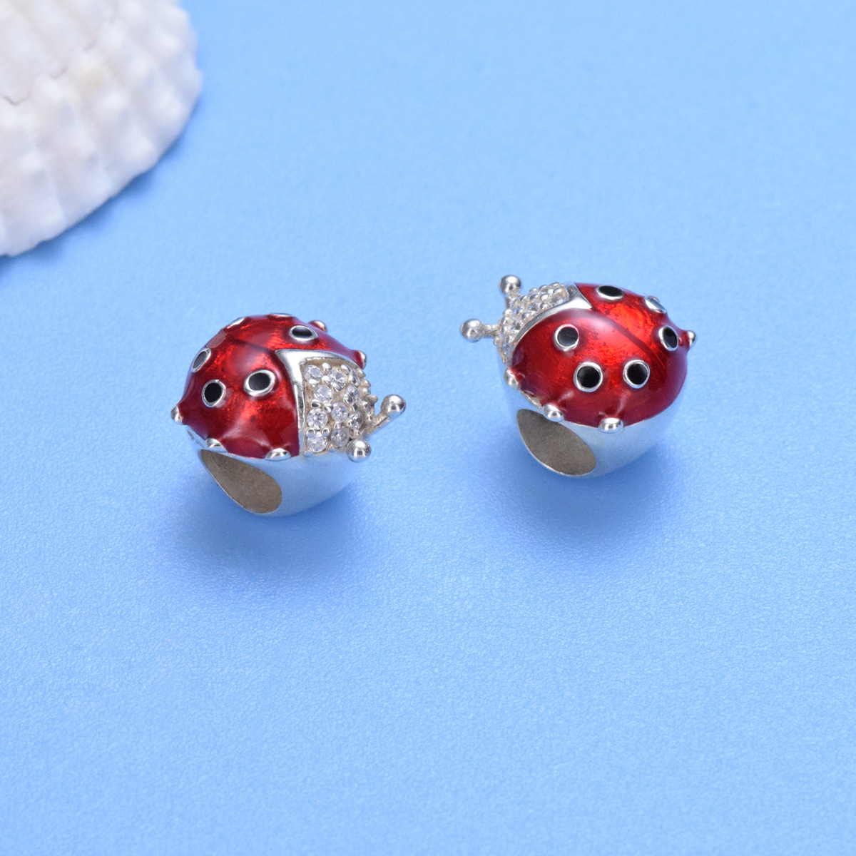 S925 sterling silver beaded DIY pendant seven star ladybug