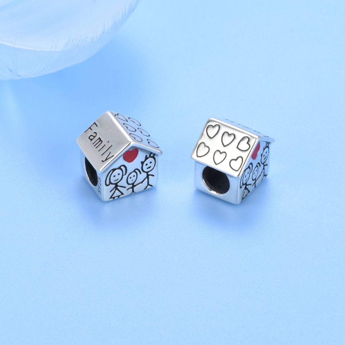 S925 Sterling Silver Beaded DIY Pendant Small House