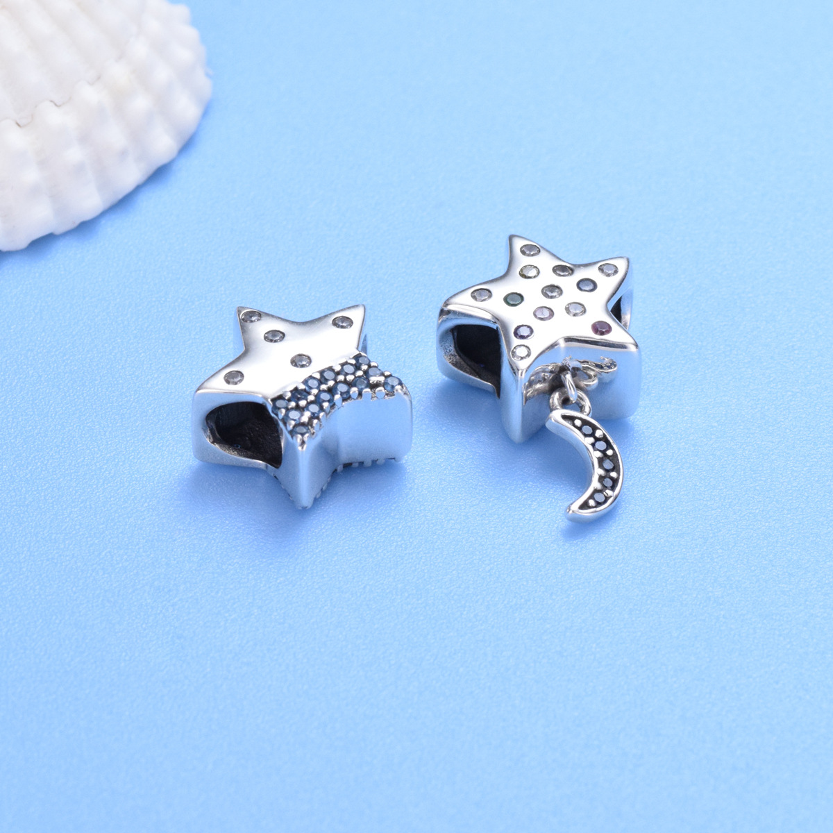 S925 Sterling Silver Beaded DIY Pendant Star Moon