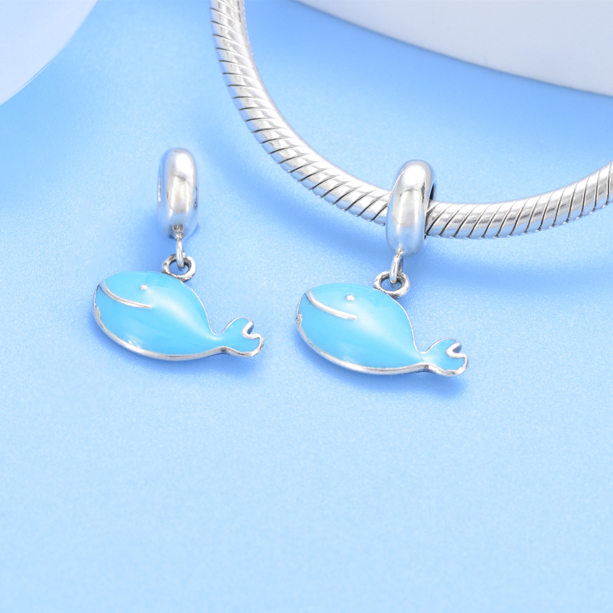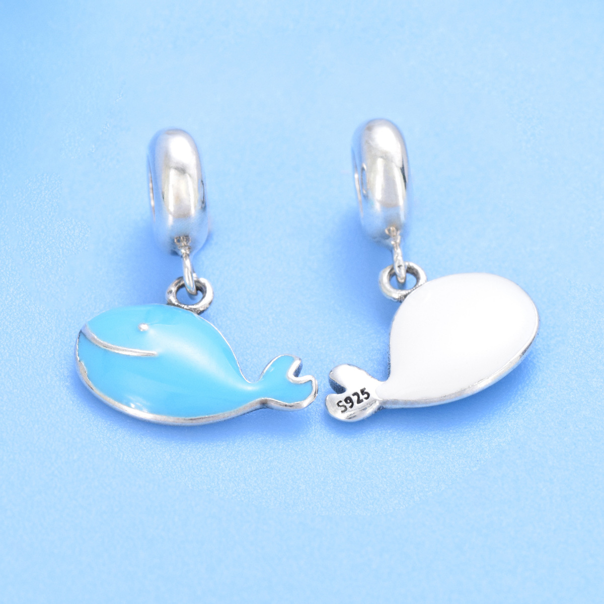 S925 Sterling Silver Beaded DIY Pendant Whale