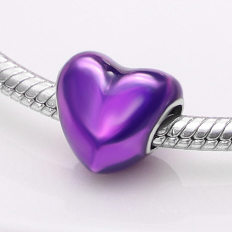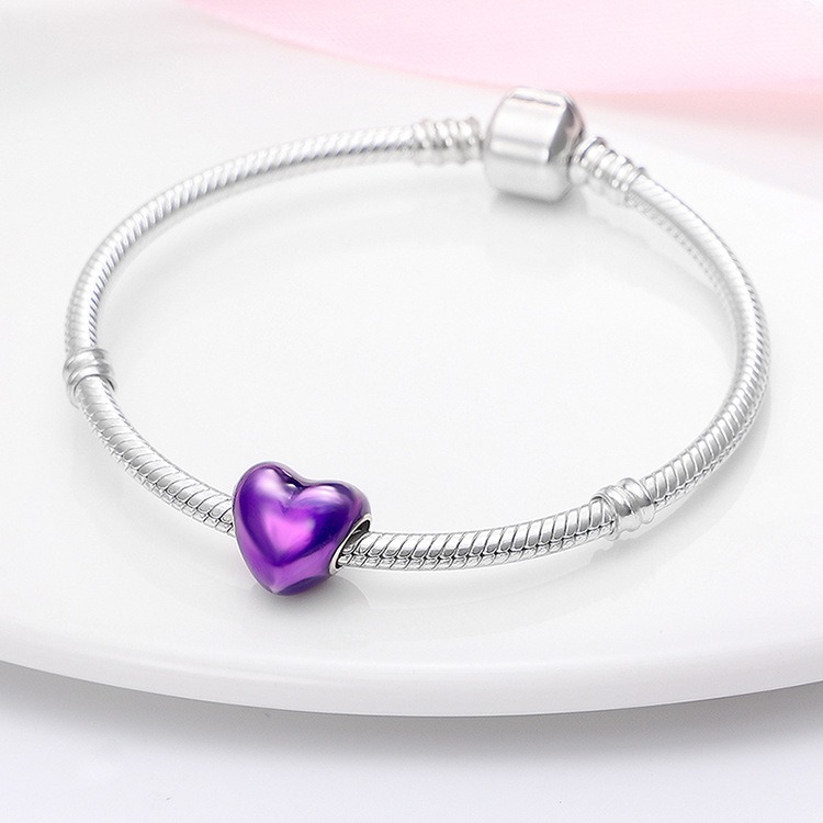 S925 sterling silver beaded DIY purple heart bracelet accessories