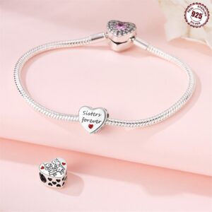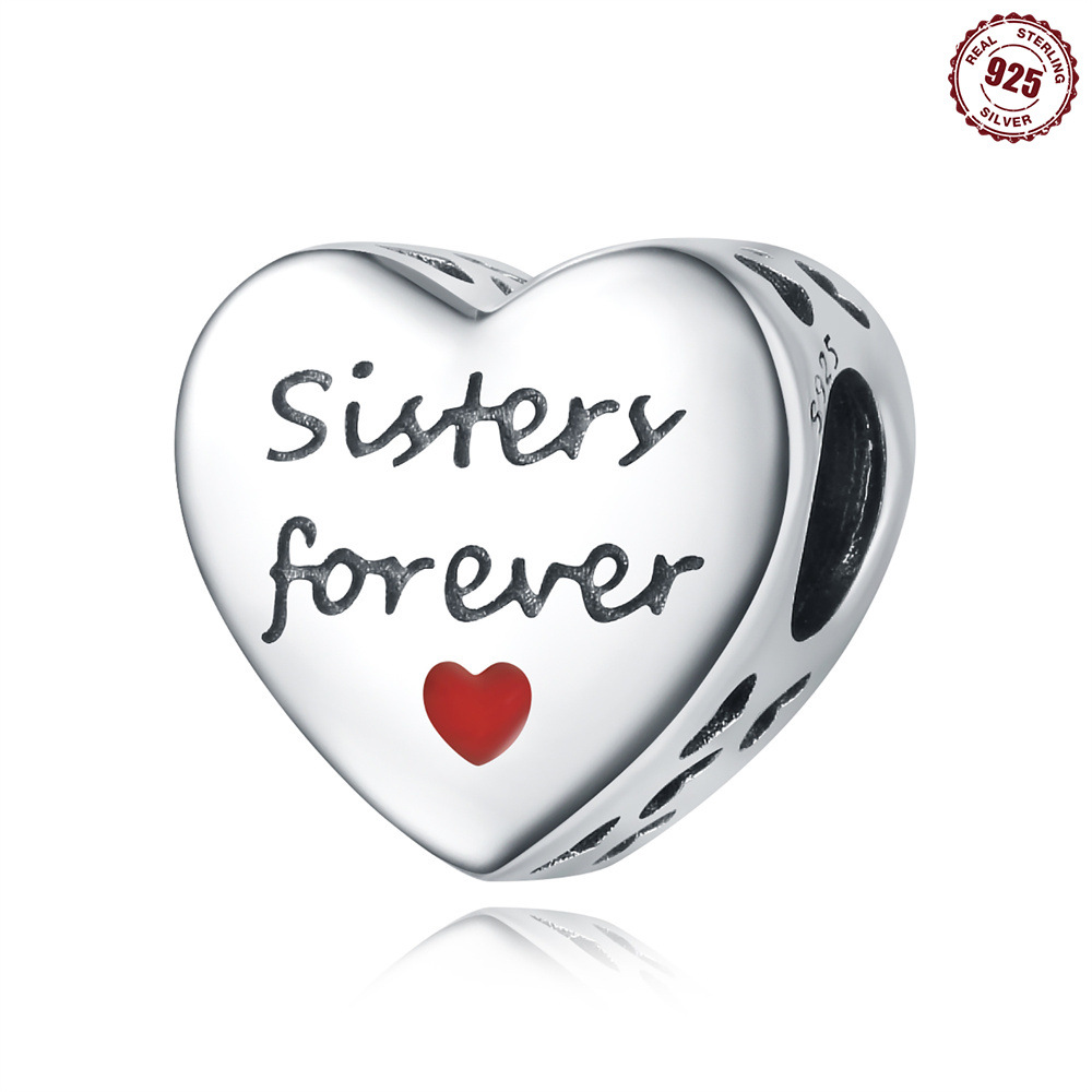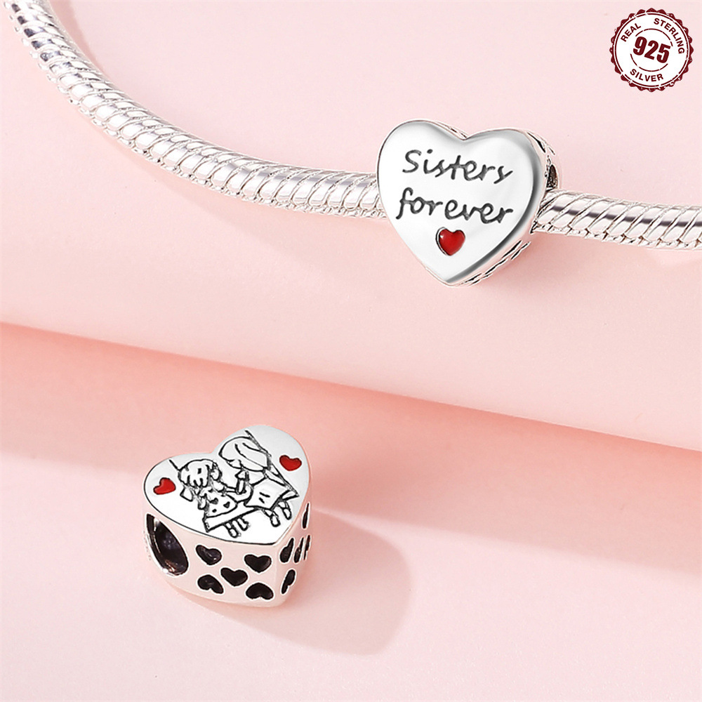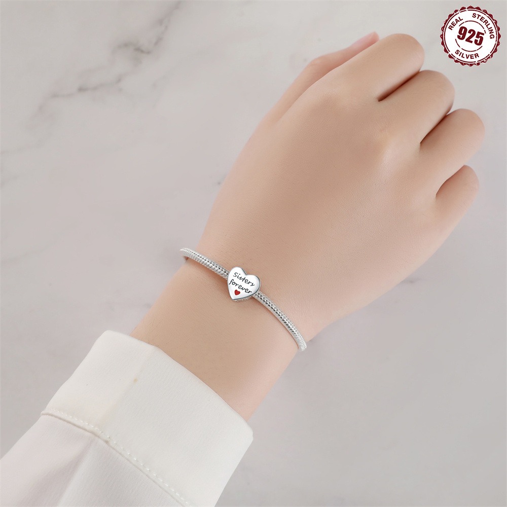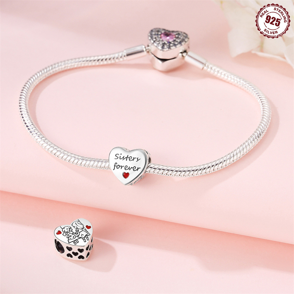 S925 sterling silver beaded DIY sisters heart bracelet accessories