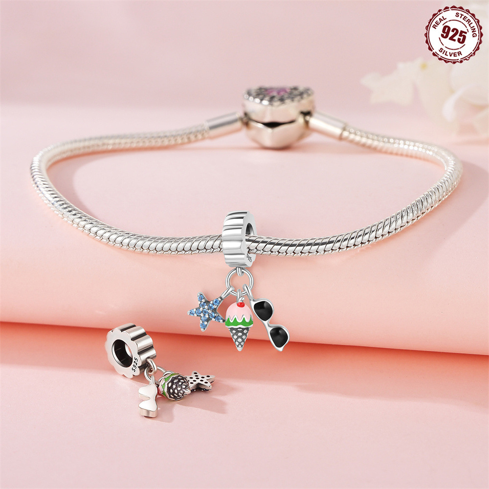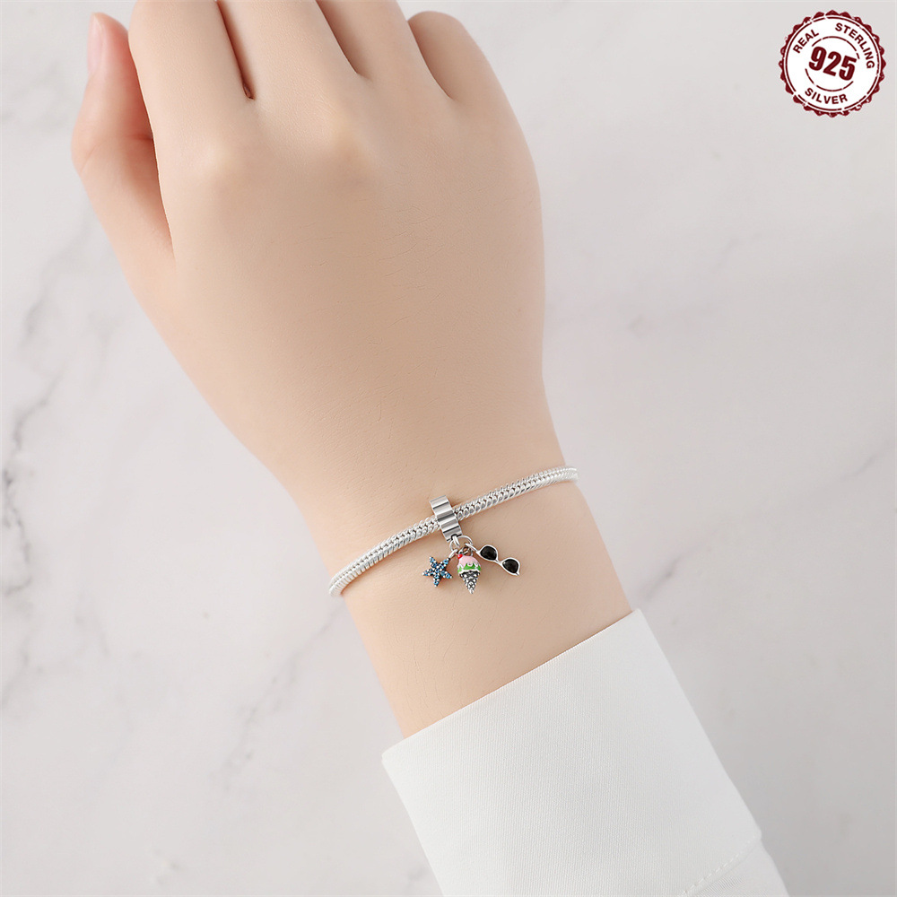S925 Sterling Silver Beaded DIY Starfish Ice Cream Sunglasses Bracelet Accessories