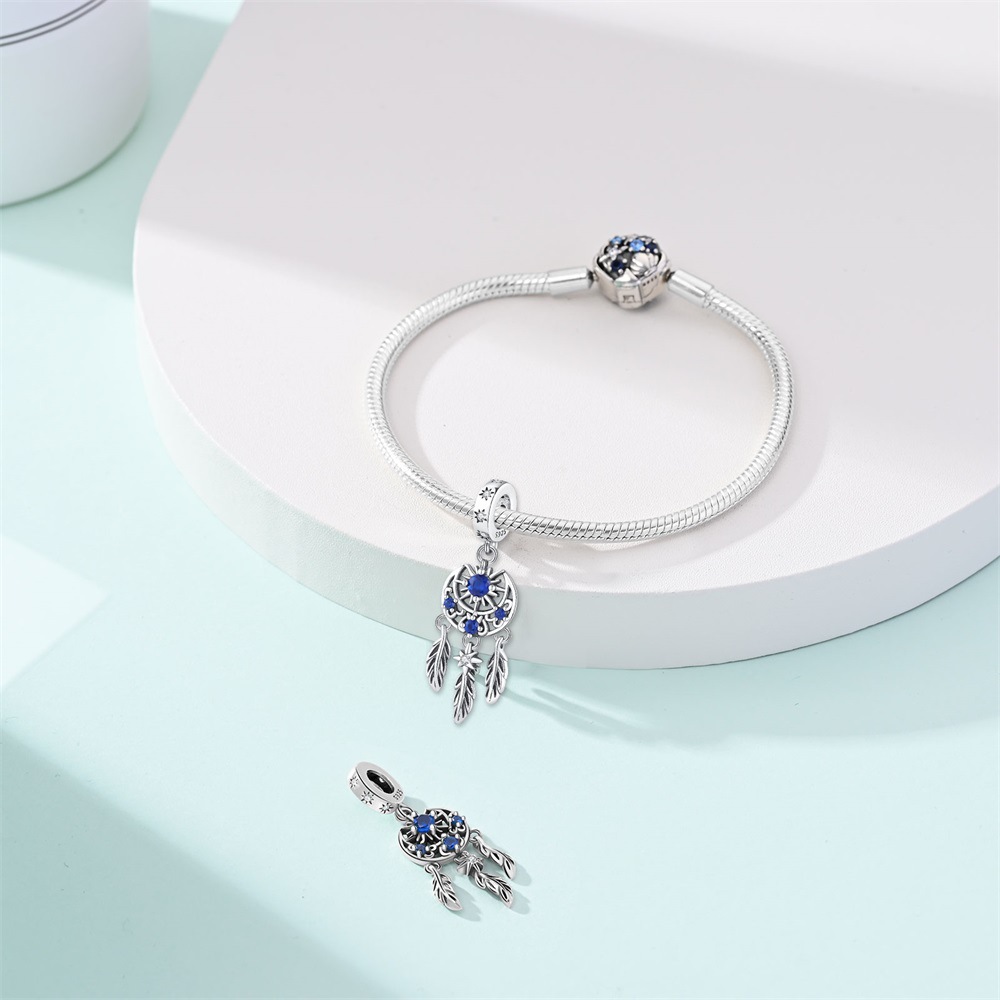 S925 sterling silver beaded dreamcatcher flower bracelet accessory