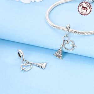 S925 sterling silver beaded heart shaped airplane Eiffel Tower bracelet accessory