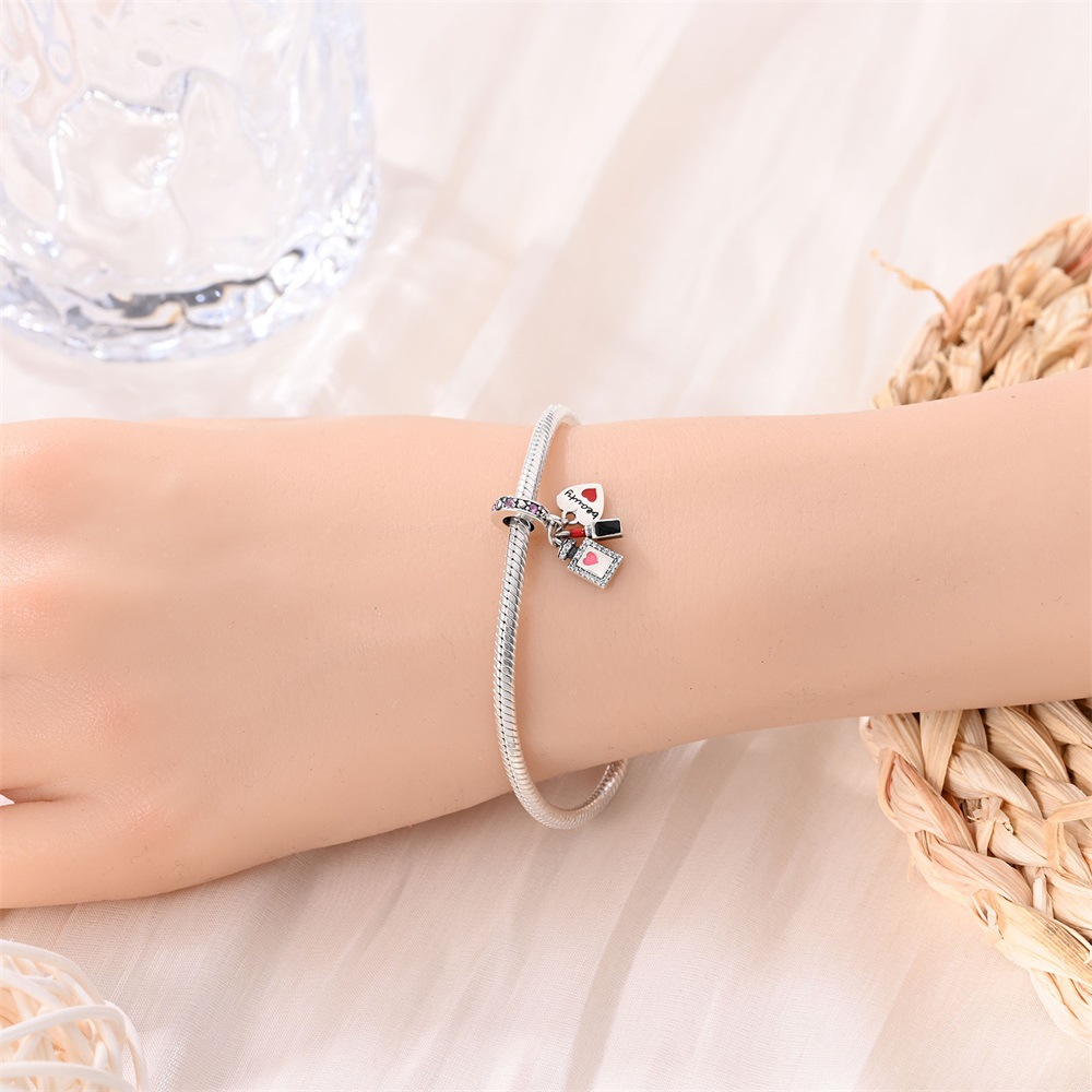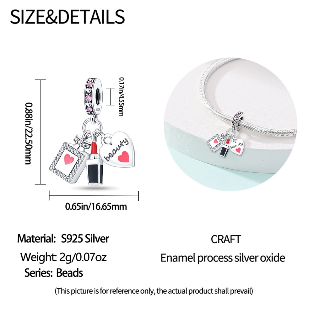 S925 Sterling Silver Beaded Lipstick Perfume Bracelet Accessories