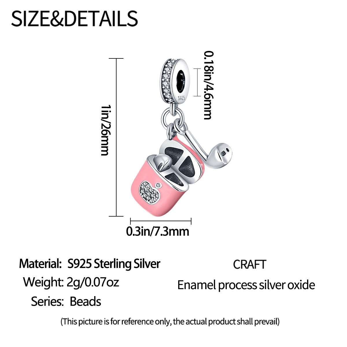 S925 sterling silver beaded pink headphone bracelet accessory quantity