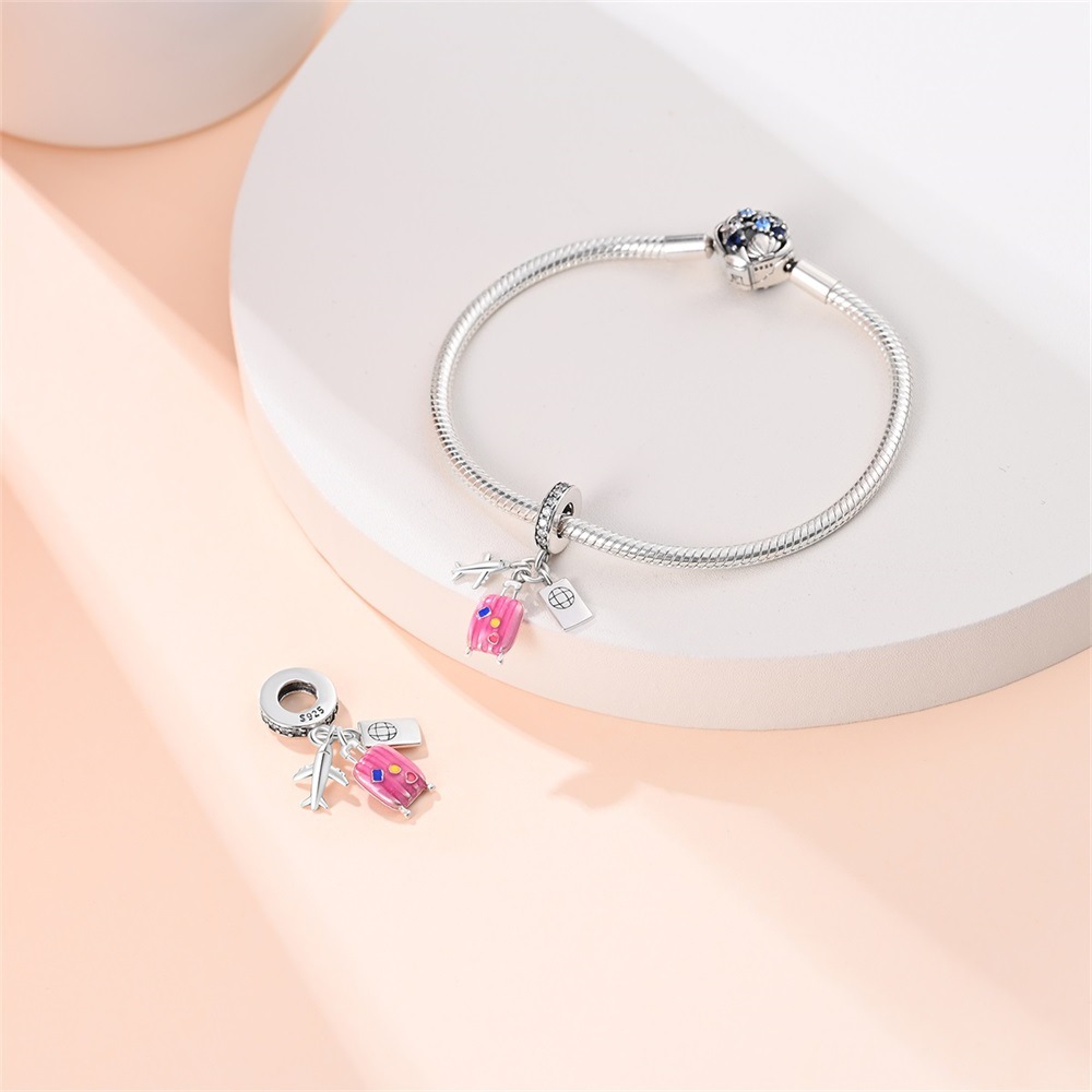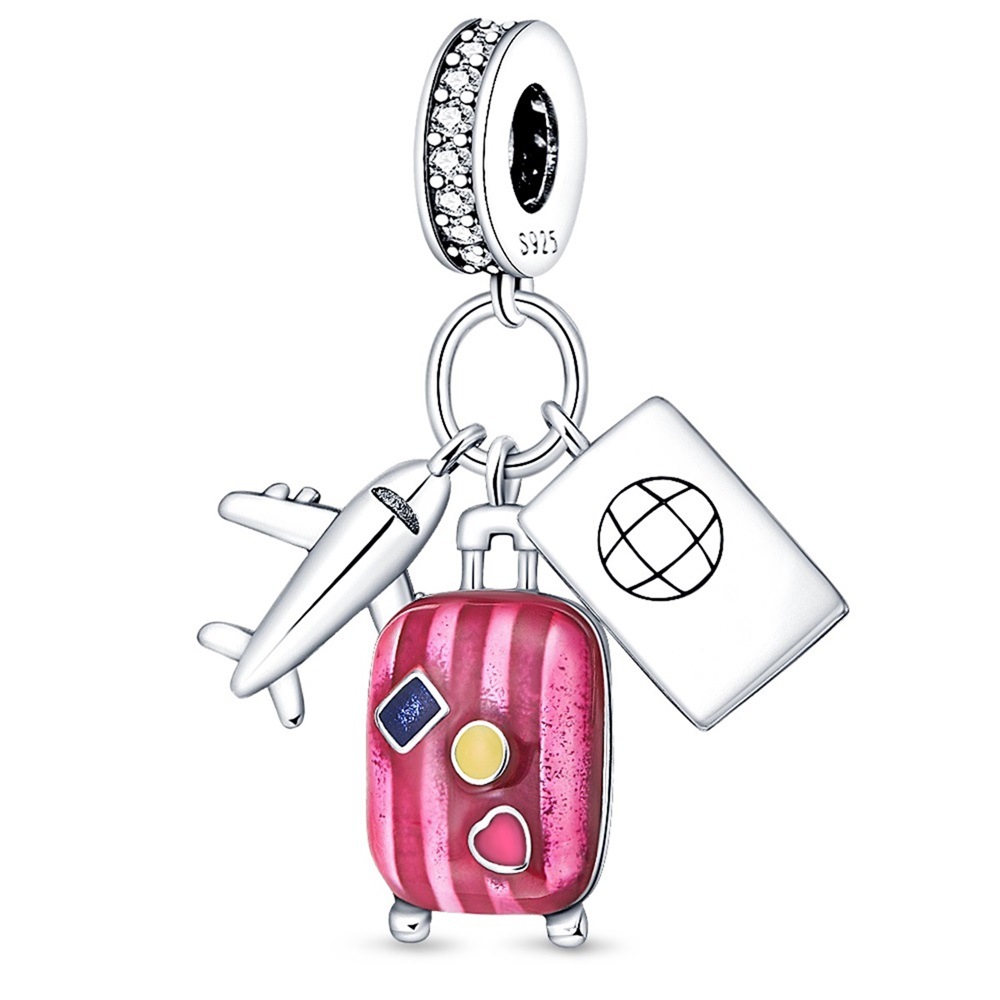 S925 sterling silver beaded to airplane suitcase chain accessory