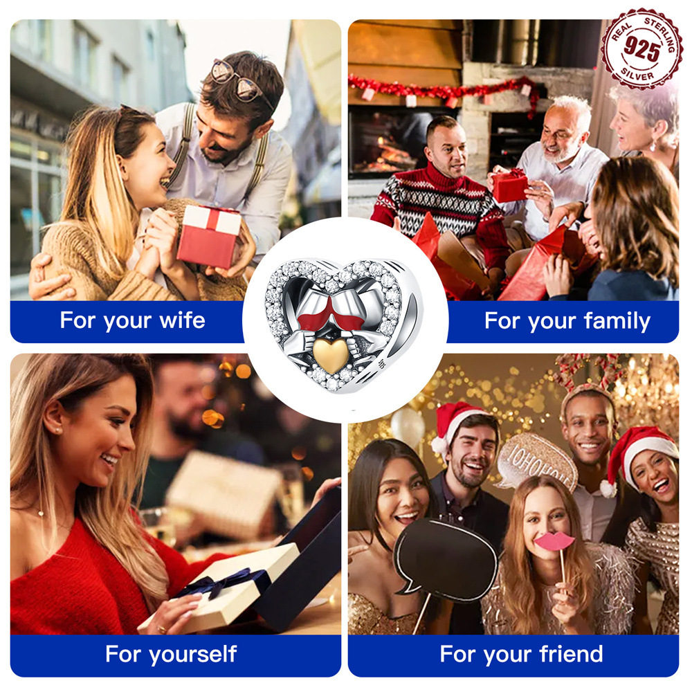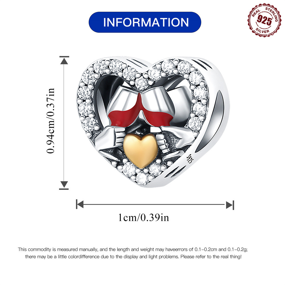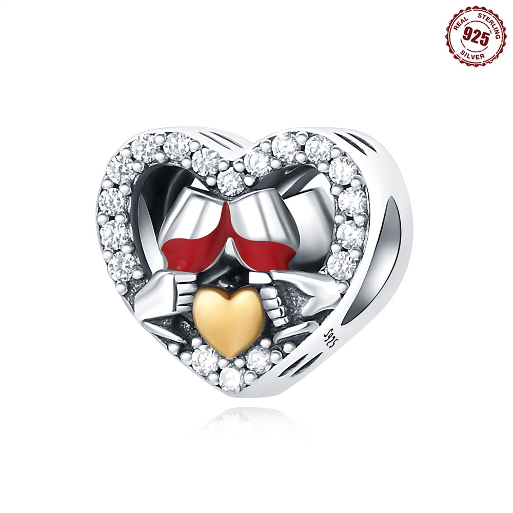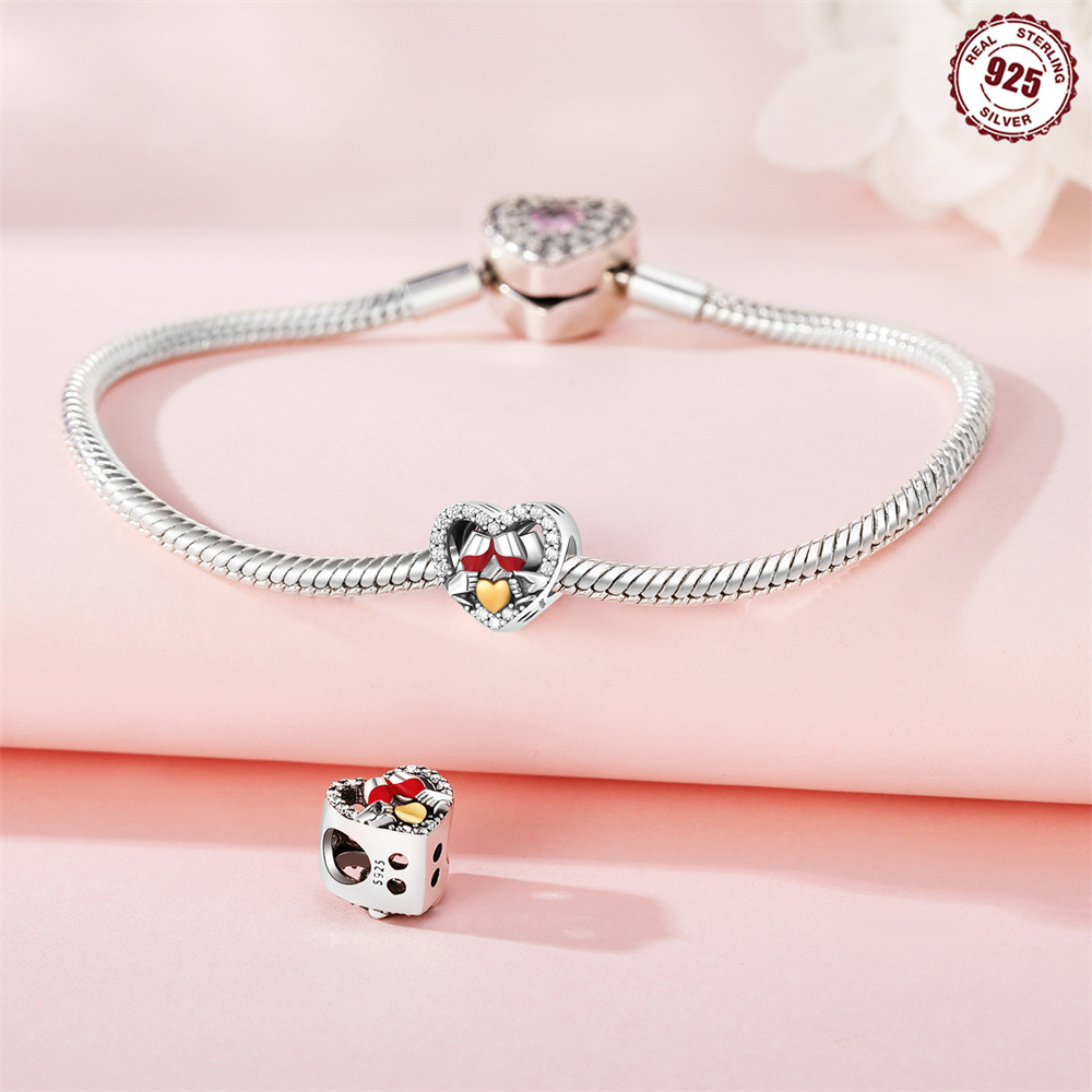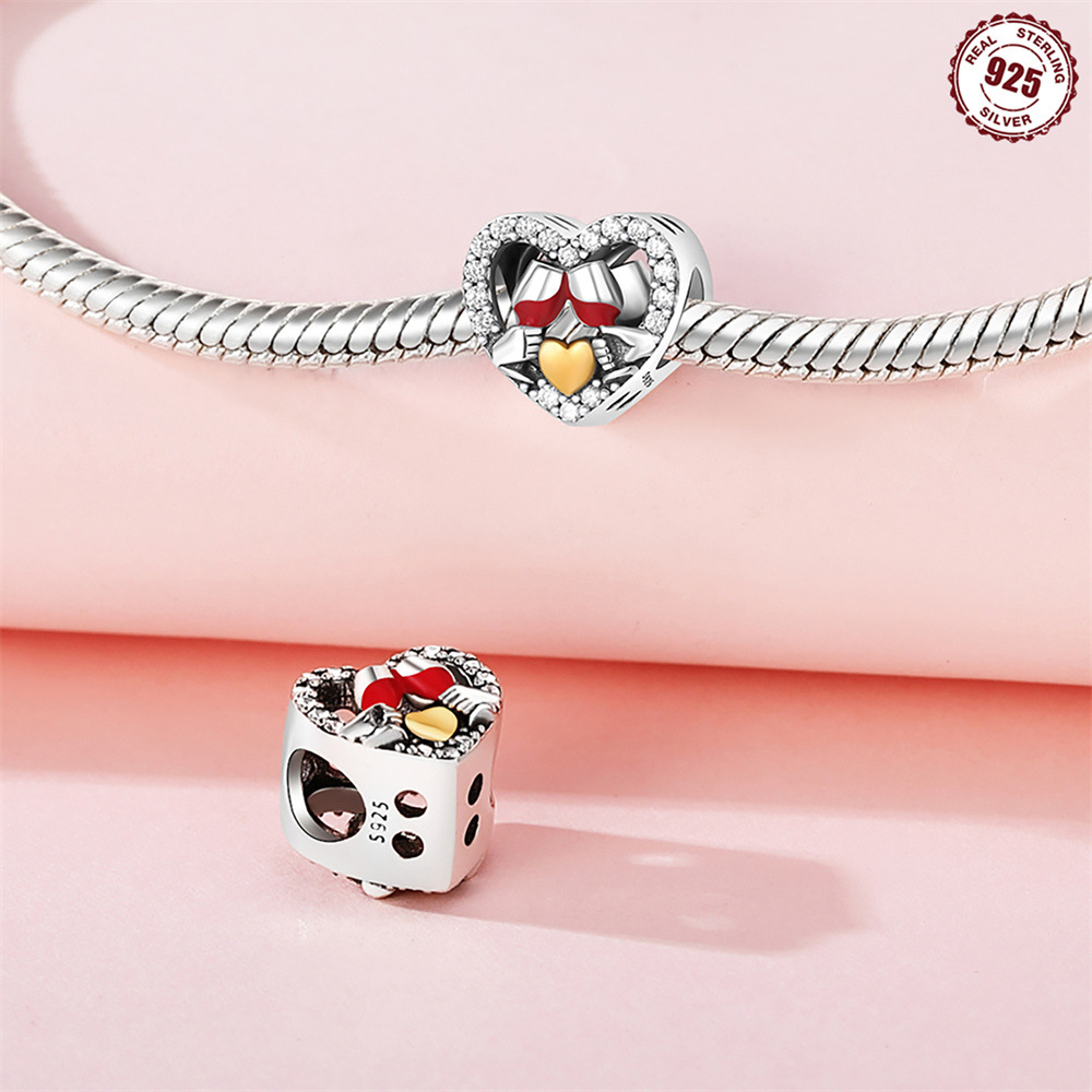 S925 Sterling Silver Beads DIY Heart Shaped Wine Glass Bracelet Accessories
