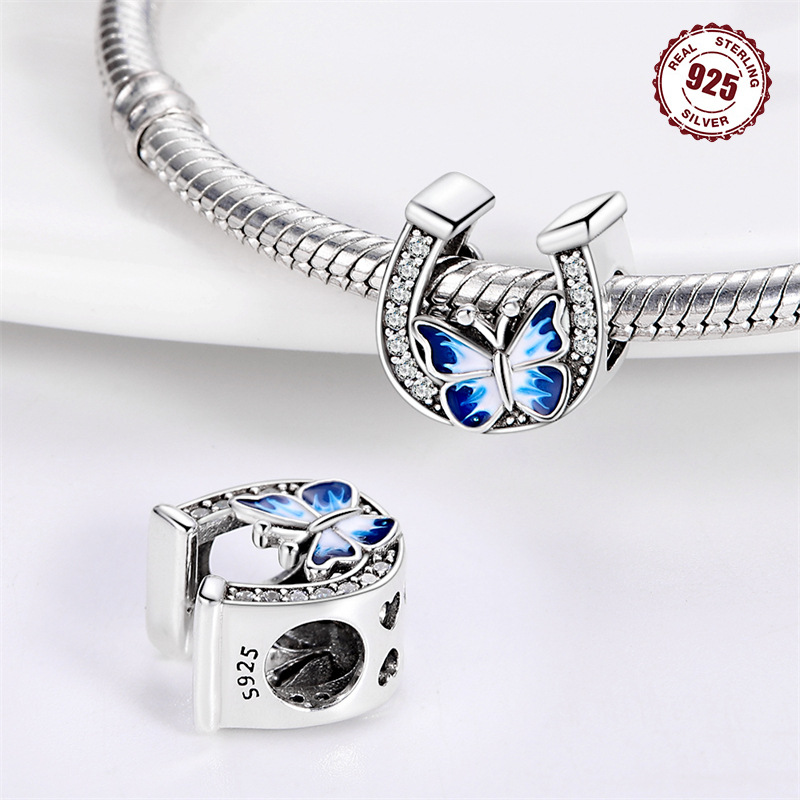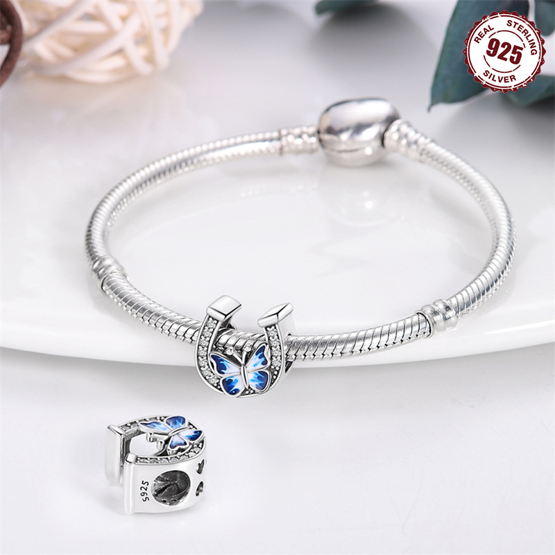S925 Sterling Silver Beads DIY Horseshoe Butterfly Bracelet Accessories