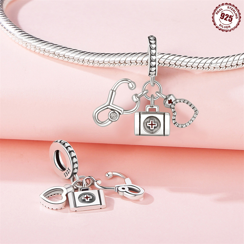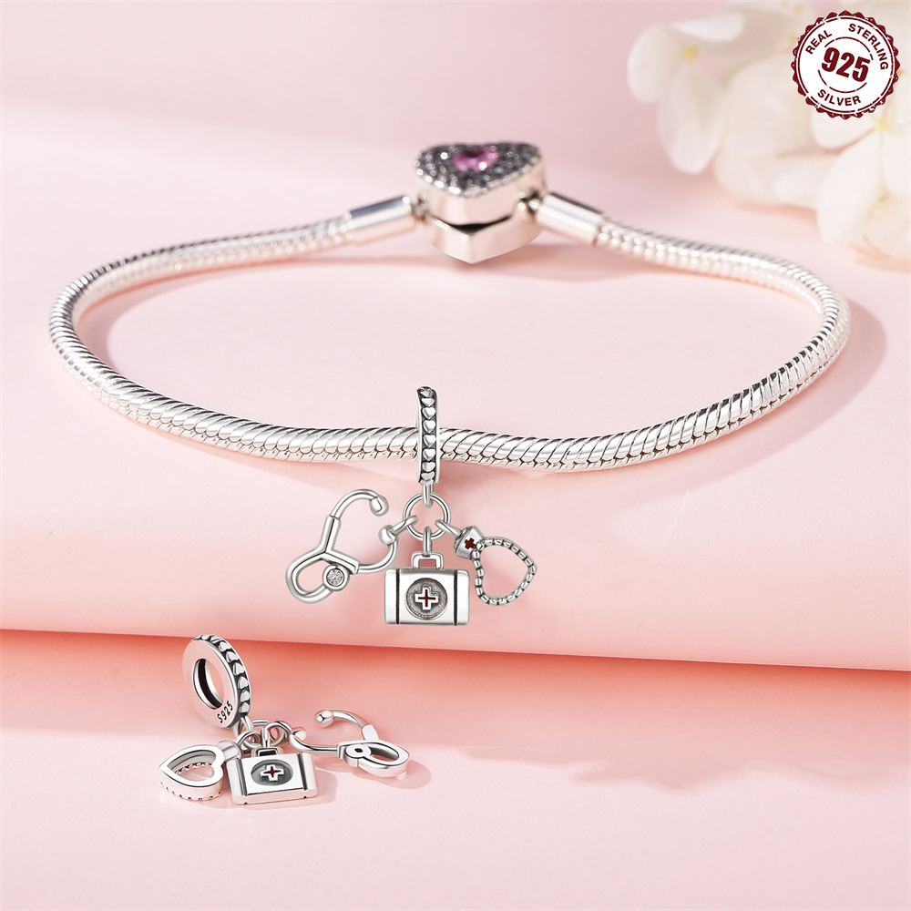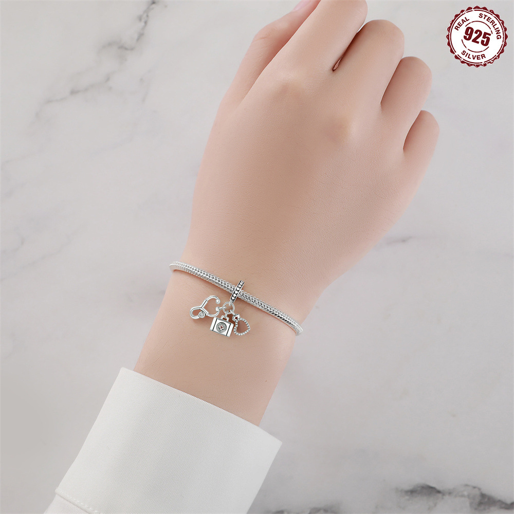 S925 Sterling Silver Beaded DIY Cartoon Bear Bracelet Accessories