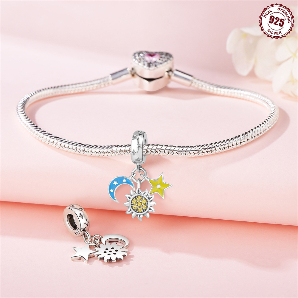 S925 Sterling Silver Beads Star Moon DIY Jewelry Accessories