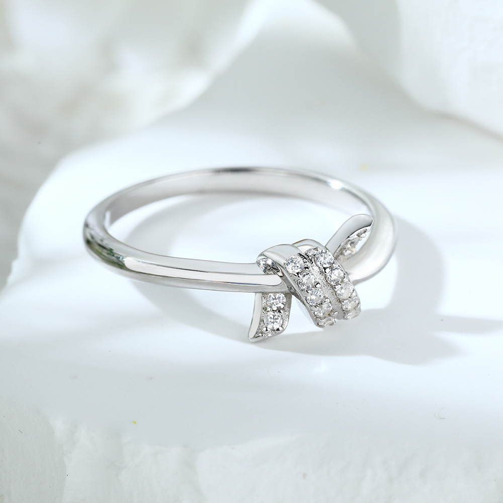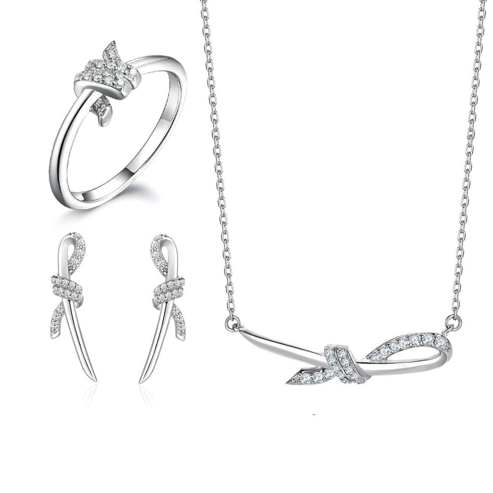 S925 sterling silver bow ring zircon stud earrings fashion ribbon necklace luxury women’s jewelry set