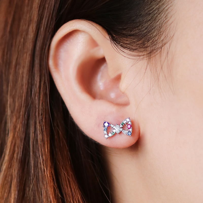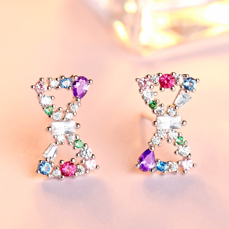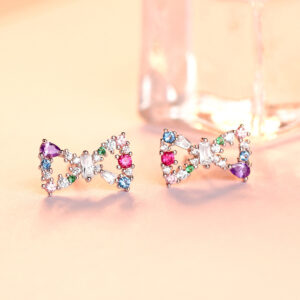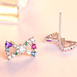 S925 sterling silver bow stud earrings girls color zircon earrings