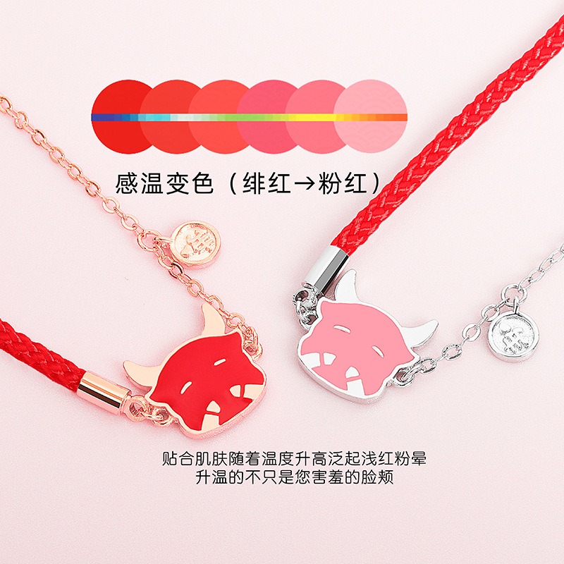 S925 sterling silver bracelet red string bull head thermochromic bracelet
