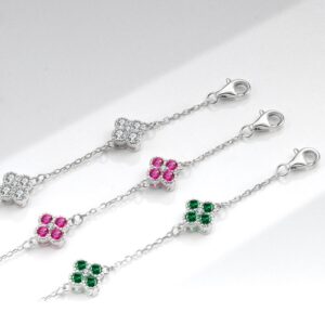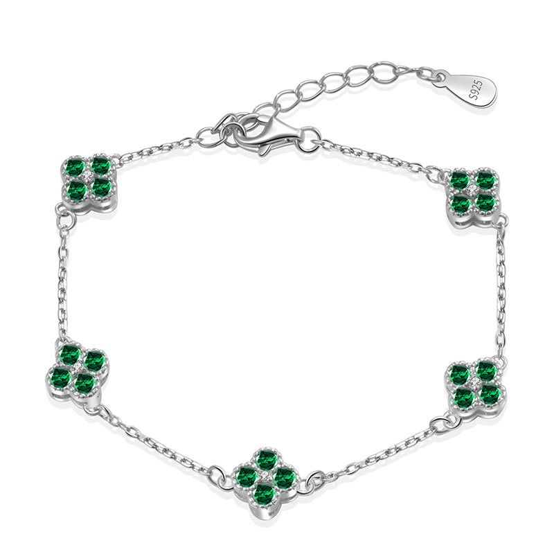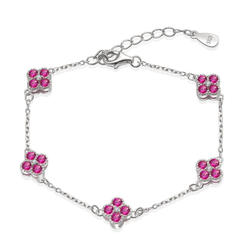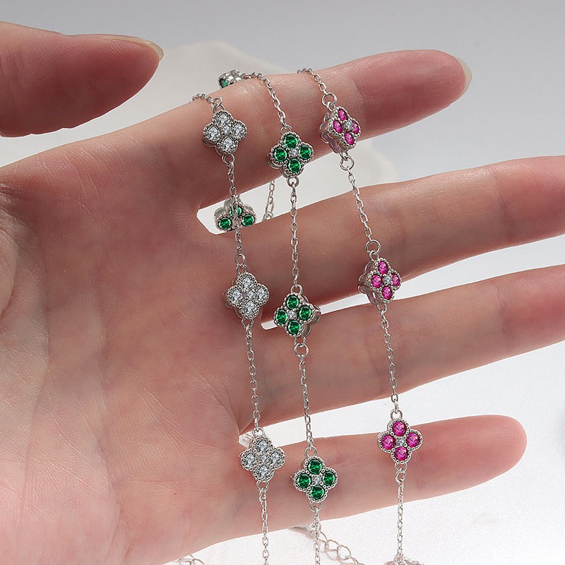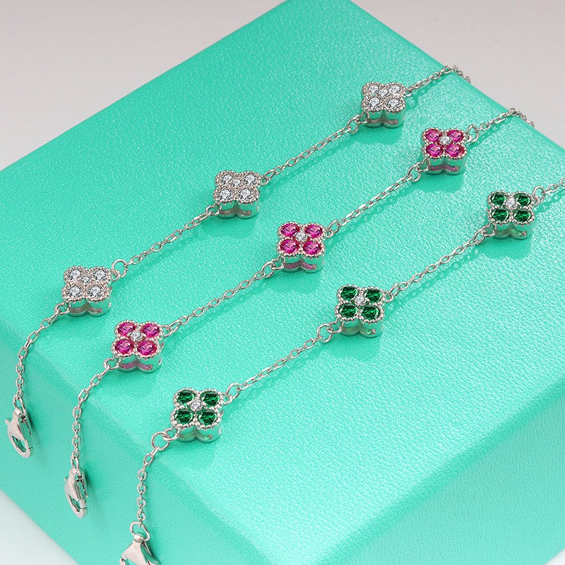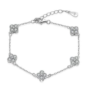 S925 sterling silver bracelet with flowers and four-leaf clover