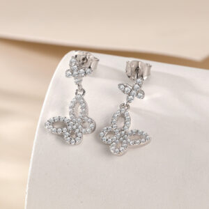 S925 sterling silver butterfly stud earrings popular bow tassel earrings