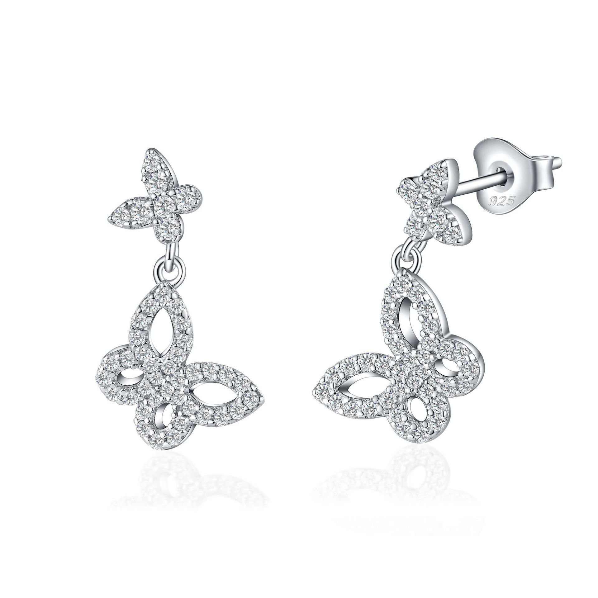 S925 sterling silver butterfly stud earrings popular bow tassel earrings