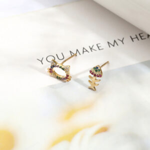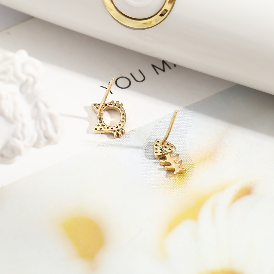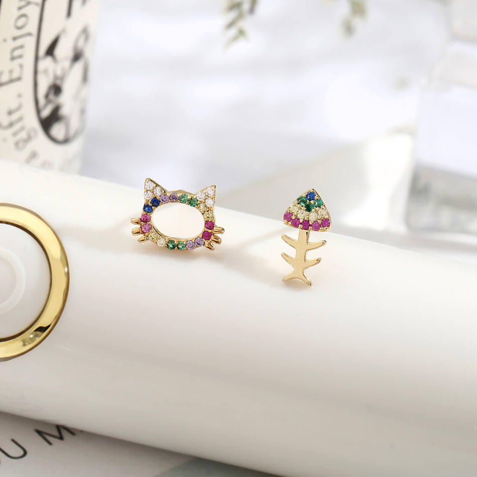 S925 Sterling Silver Cat Head Fishbone Personality Design Stud Earrings Fashion Versatile Earrings
