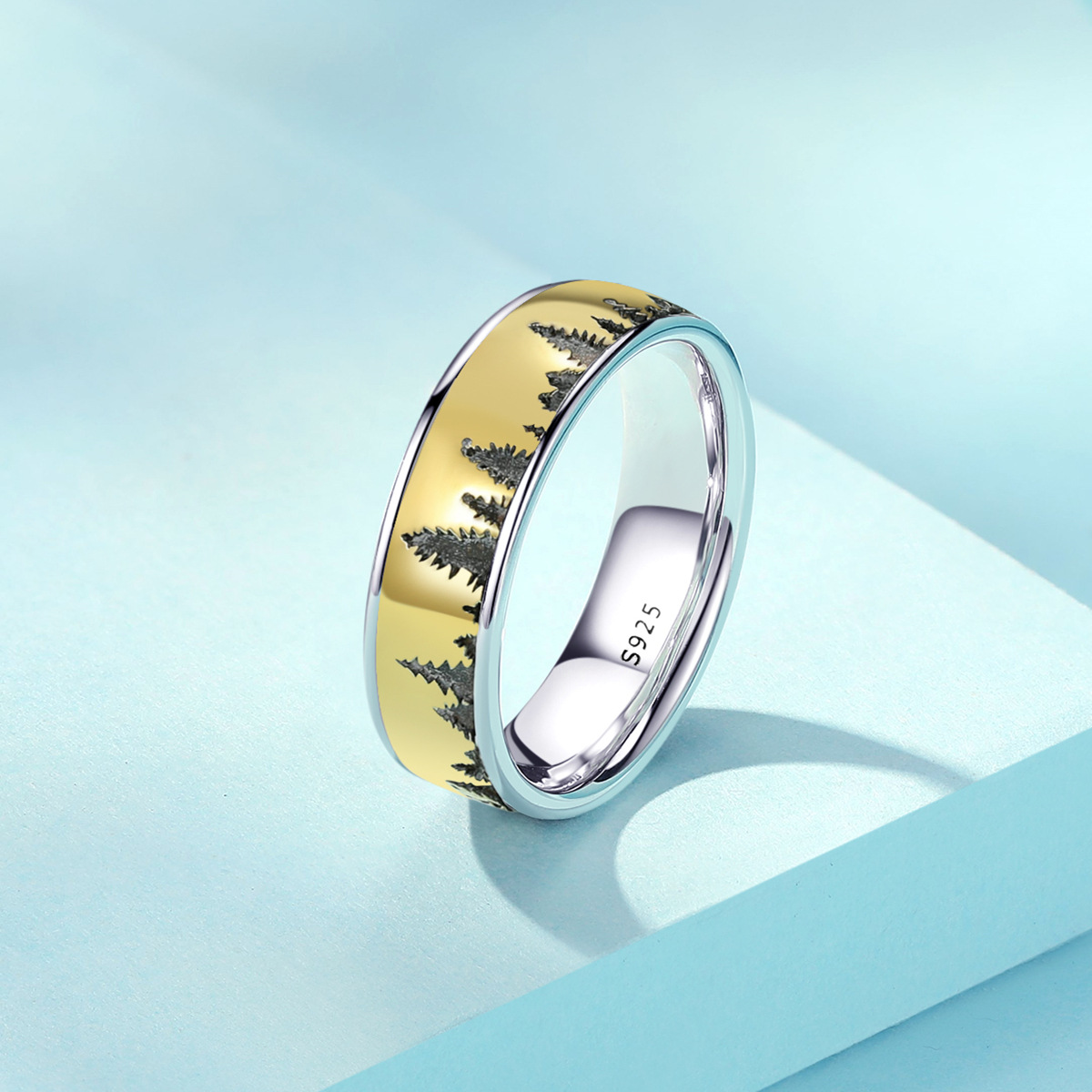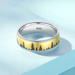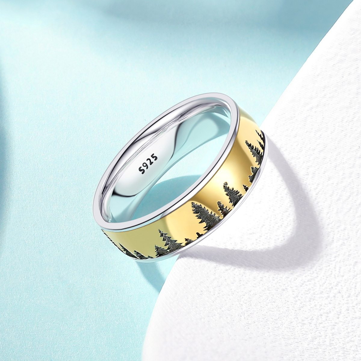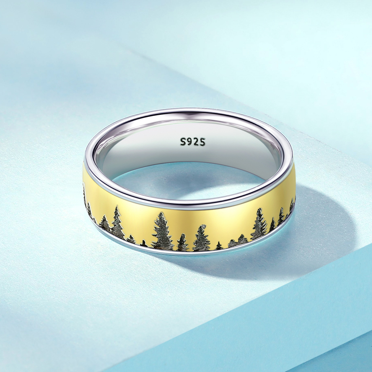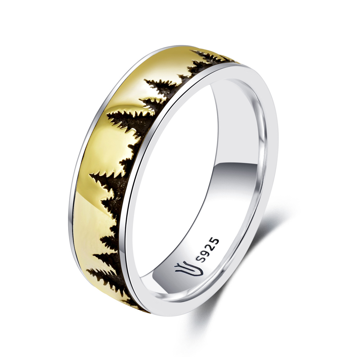 S925 sterling silver couple ring forest pattern gold craft unisex