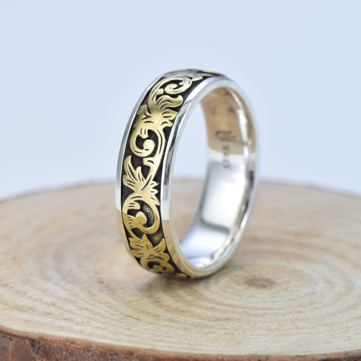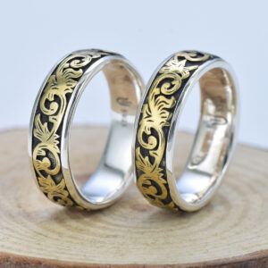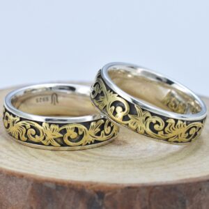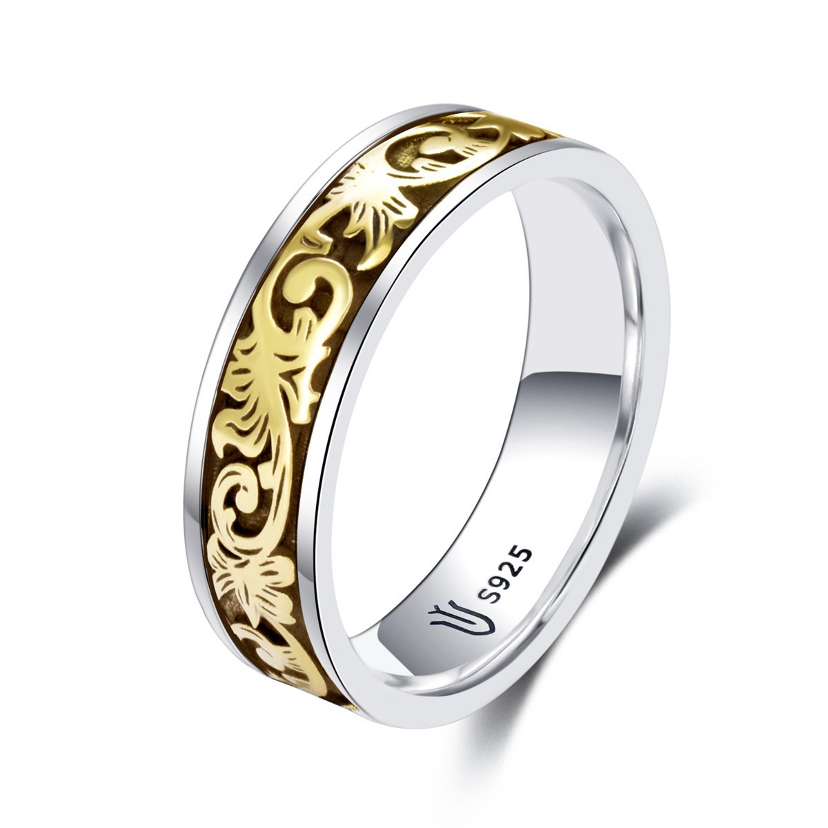 S925 sterling silver couple ring grass pattern gold craft unisex